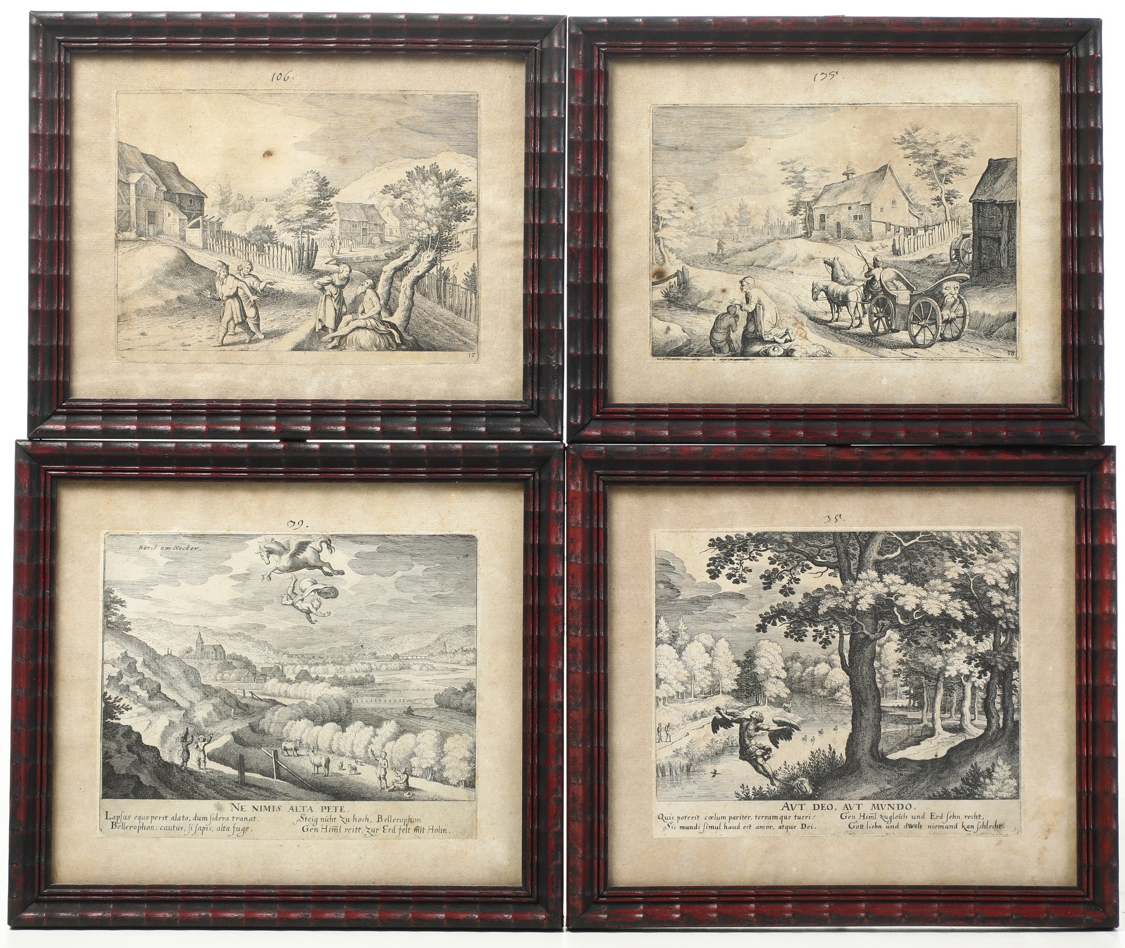 Due raffiguranti paesaggi con figure e due di soggetto mitologico; entro cornici.