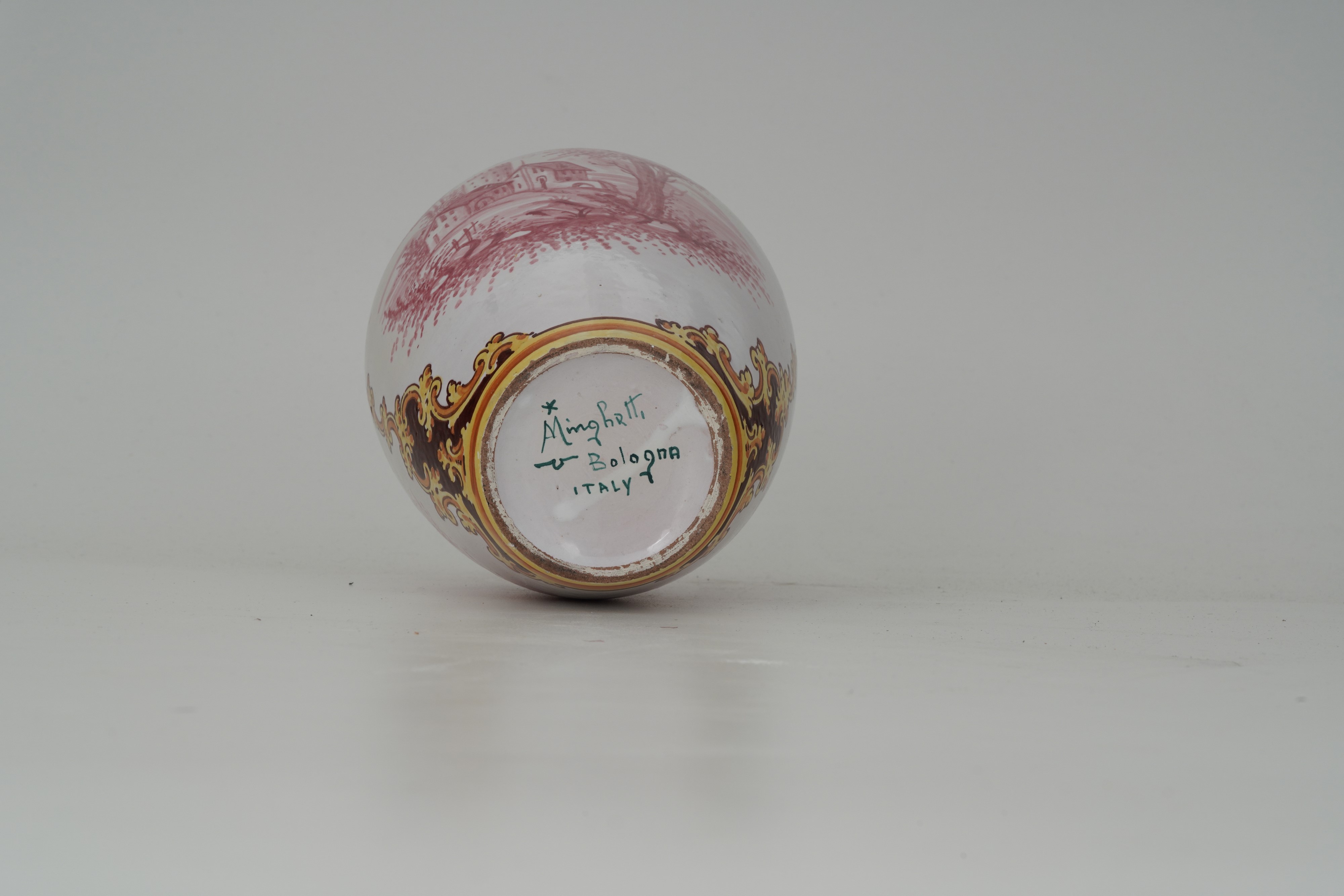 Maiolica. Marca: firma Minghetti con stella. Altezza cm 22. Conservazione: ottima