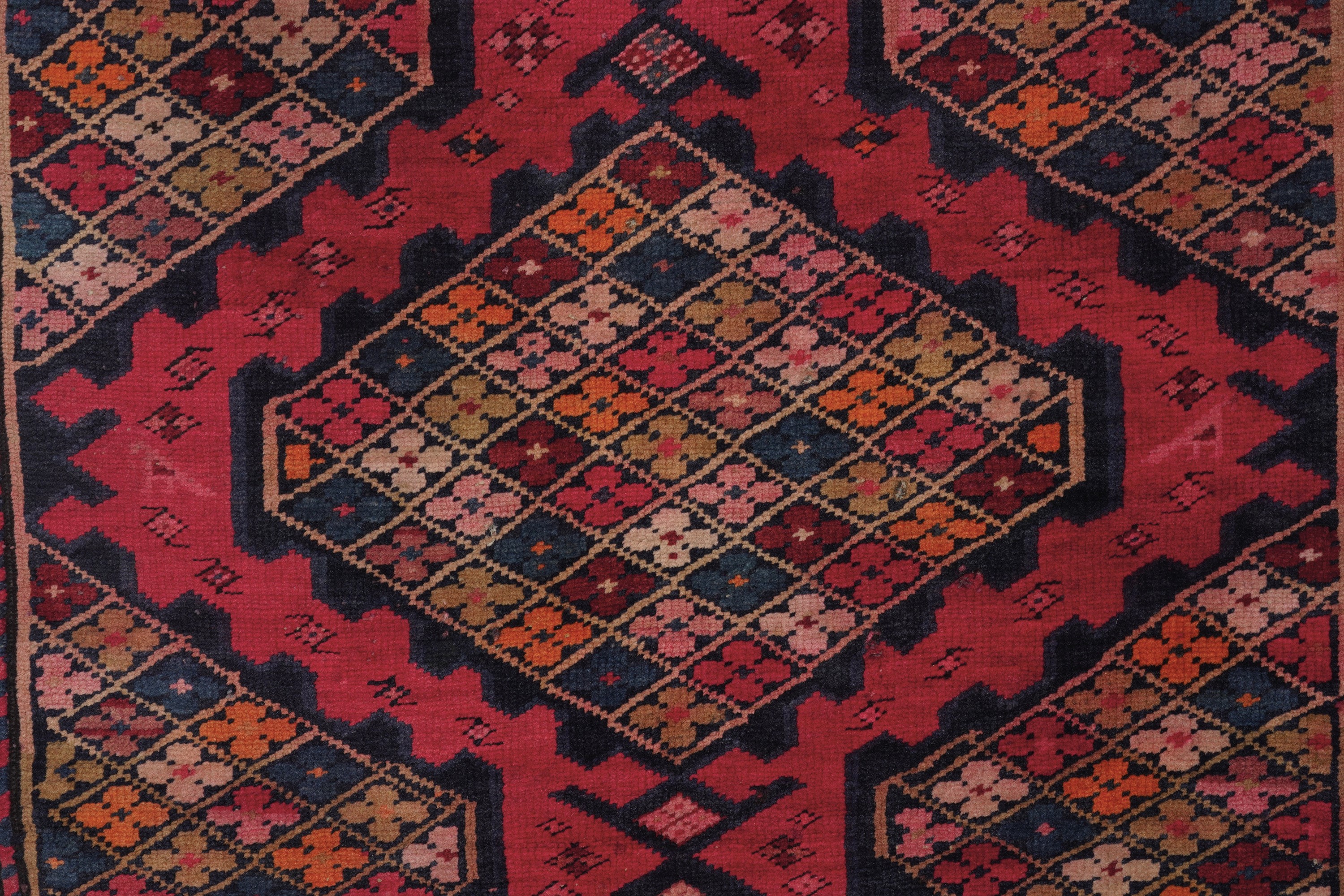 campo rosso con medaglioni contenenti piccoli fiorellini