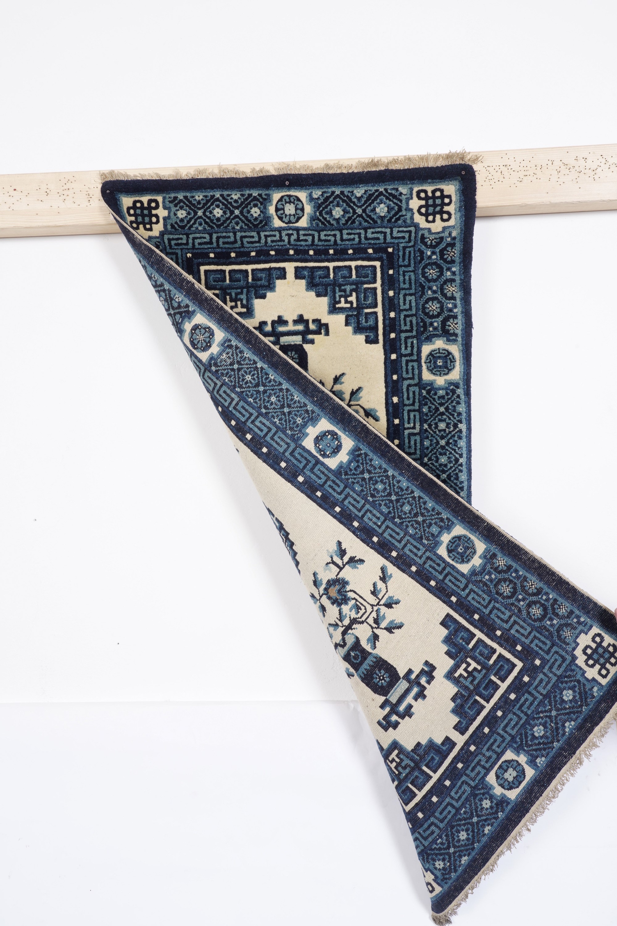 campo bianco con vasi contenenti peonie, negli angoli troviamo "il nodo infinito" simbolo di saggezza infinita.