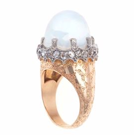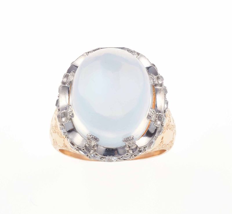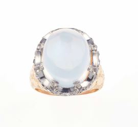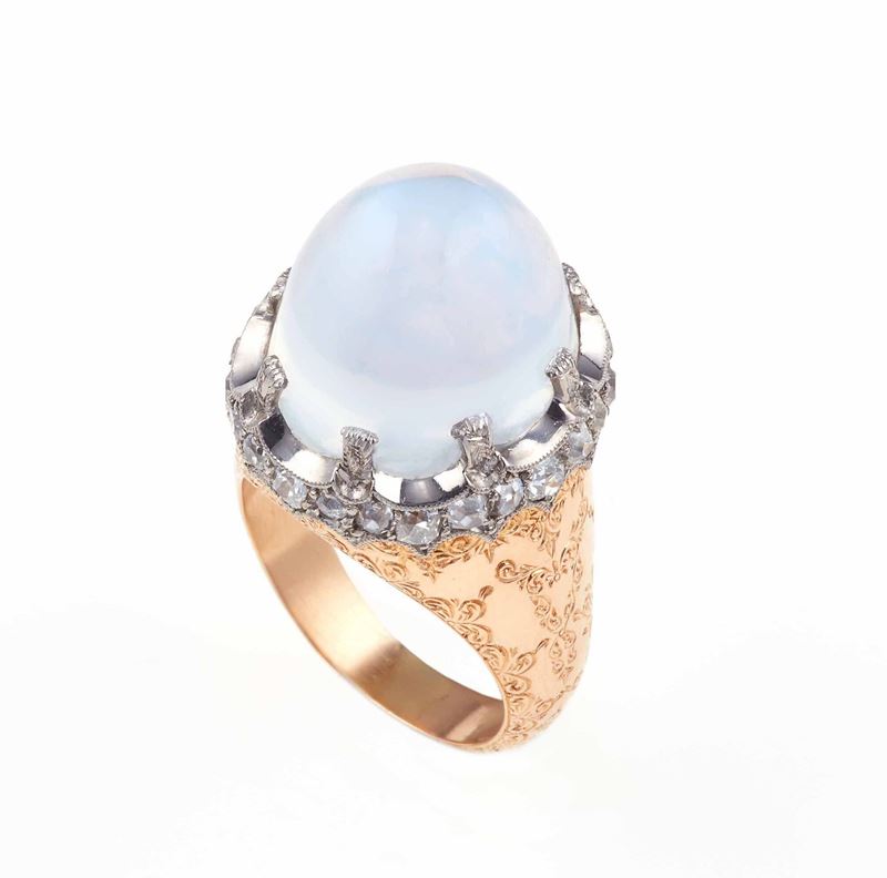 Anello con clair de lune taglio cabochon e piccoli diamanti