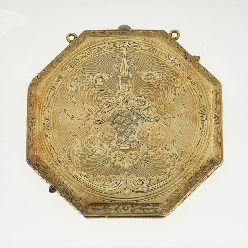 oro giallo 750/1000, con specchio all'interno. Privo di punzoni