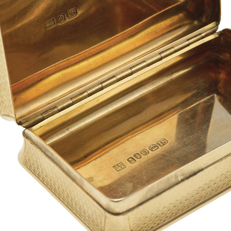 oro giallo 750/1000. Punzoni inglesi. Punzone del fabbricante non identificato, riportato in Jackson, English goldsmiths and their marks p. 227, ed 1964