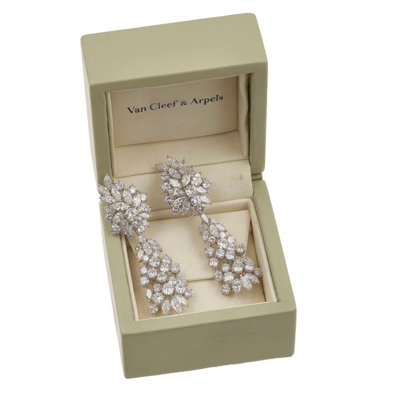 Van Cleef & Arpels. Orecchini pendenti con diamanti taglio brillante e navette per totale ct 16.00 circa