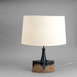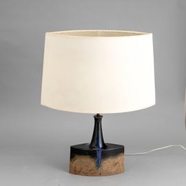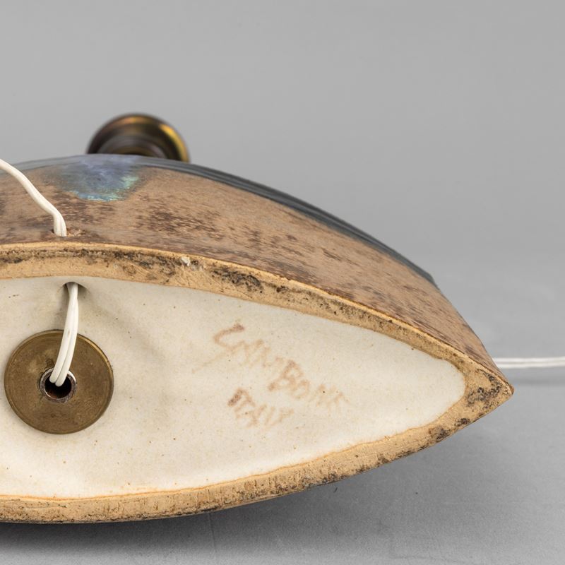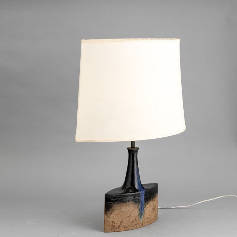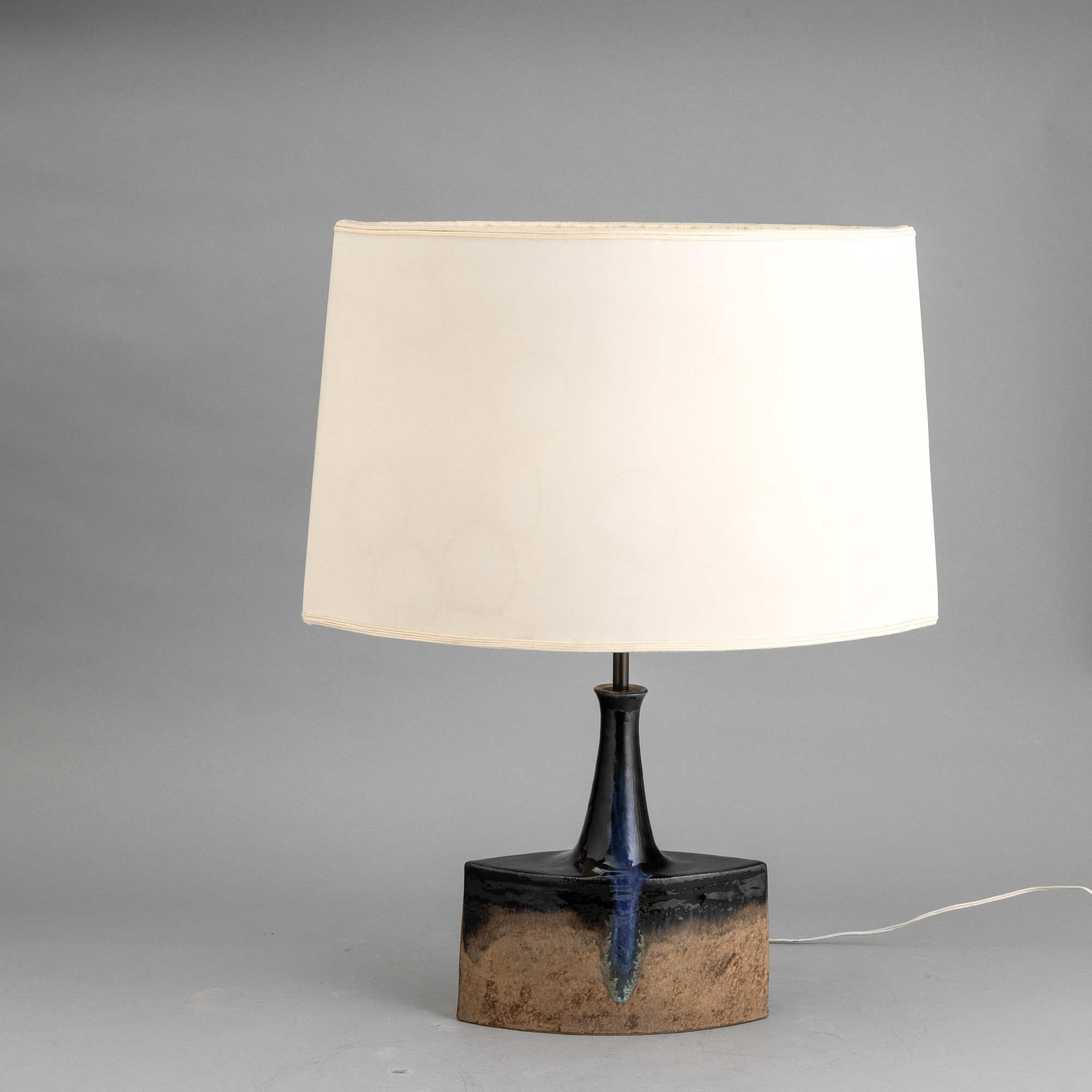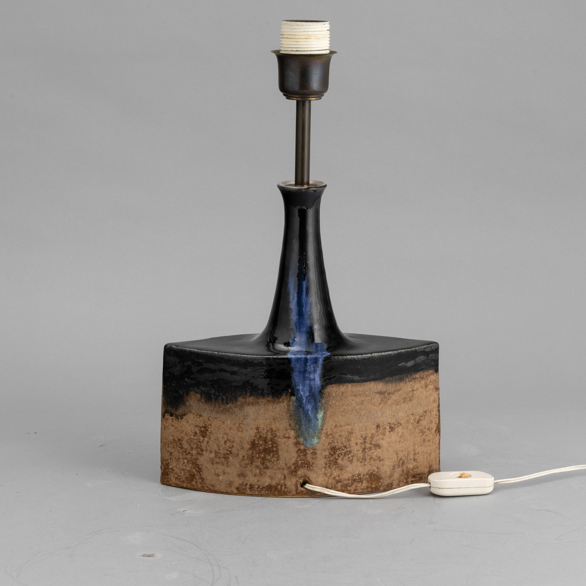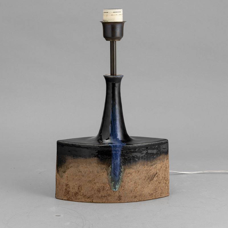 Base di lampada in forma di bottiglia in grés con decoro di smalto colato.
