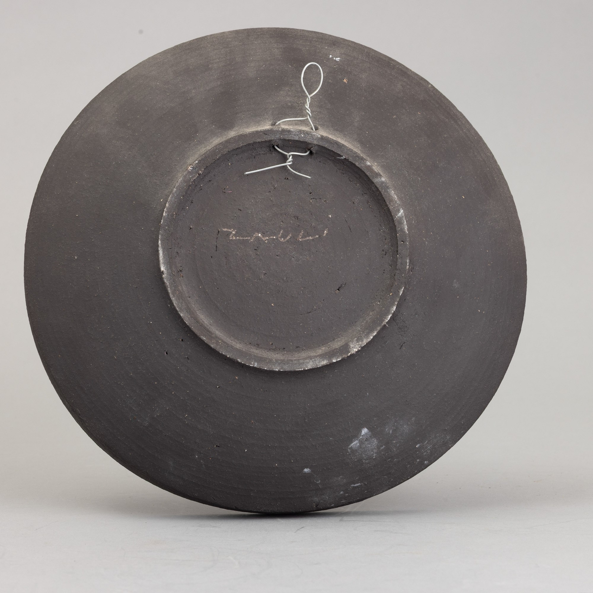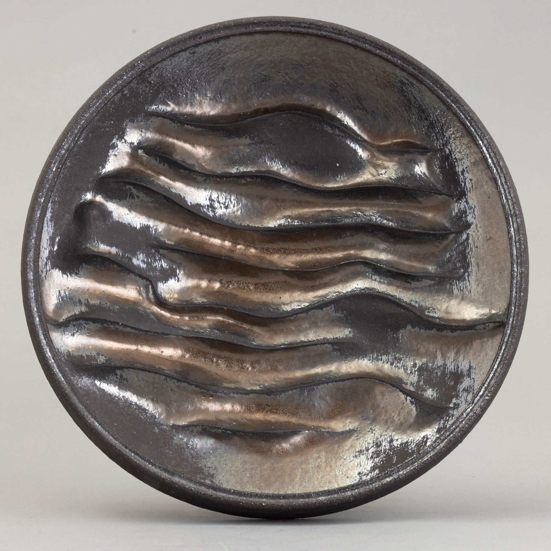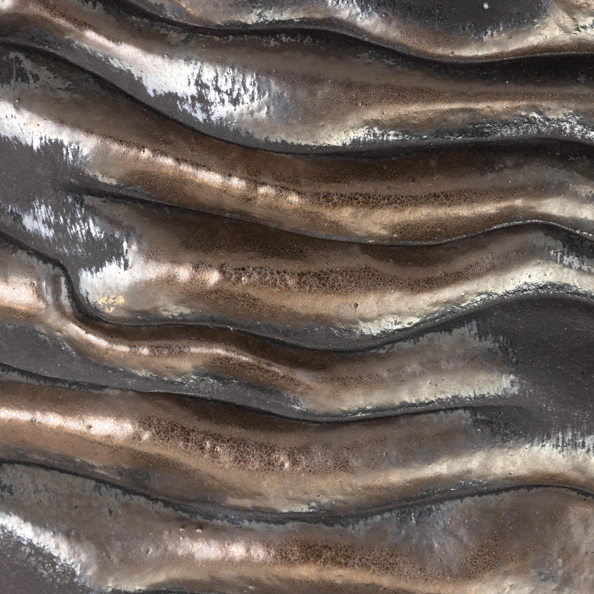 Ciotola in grés con decoro astratto di onde a rilievo.