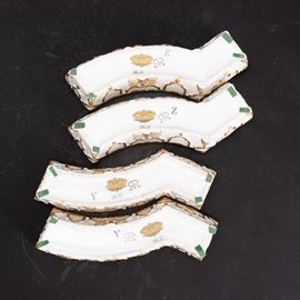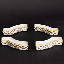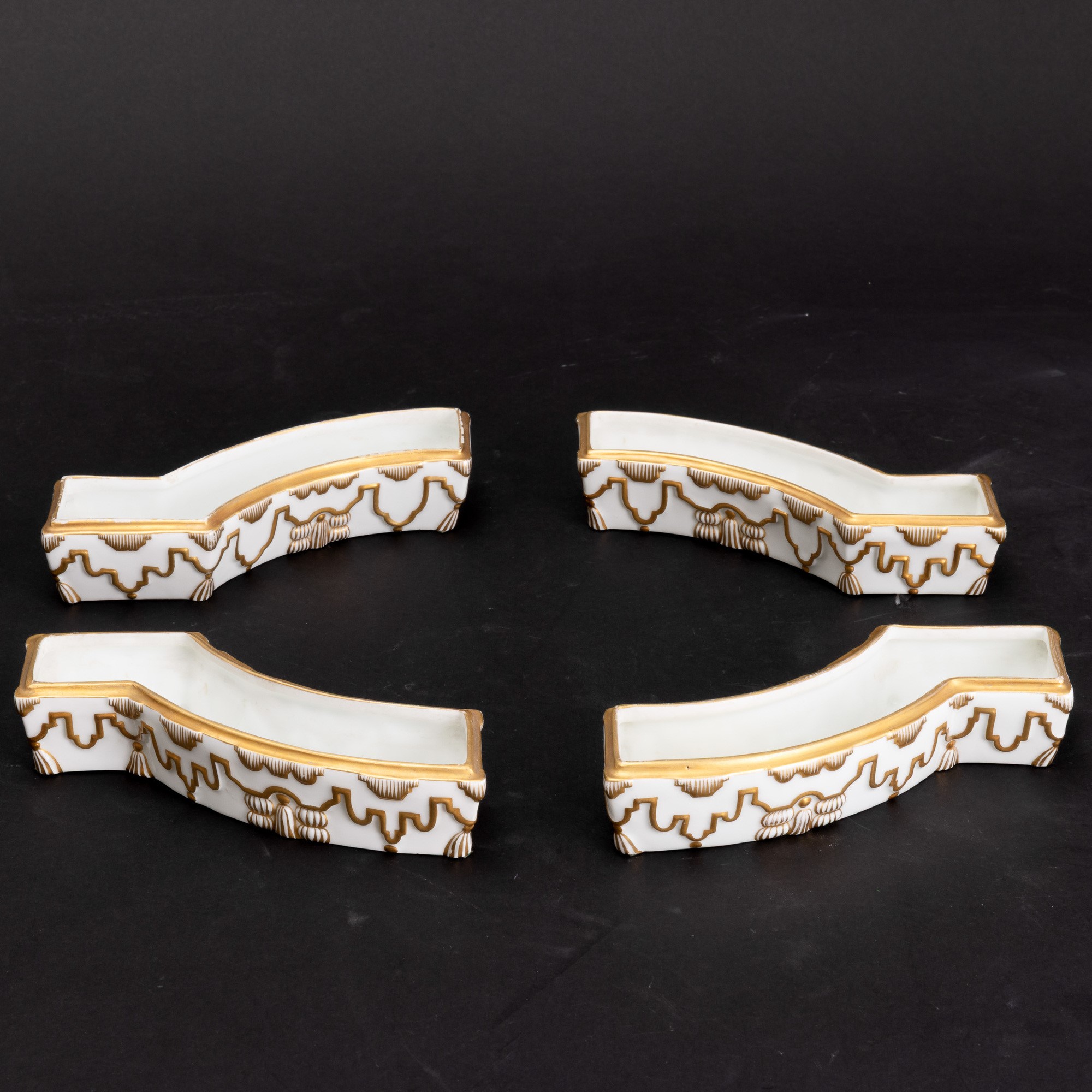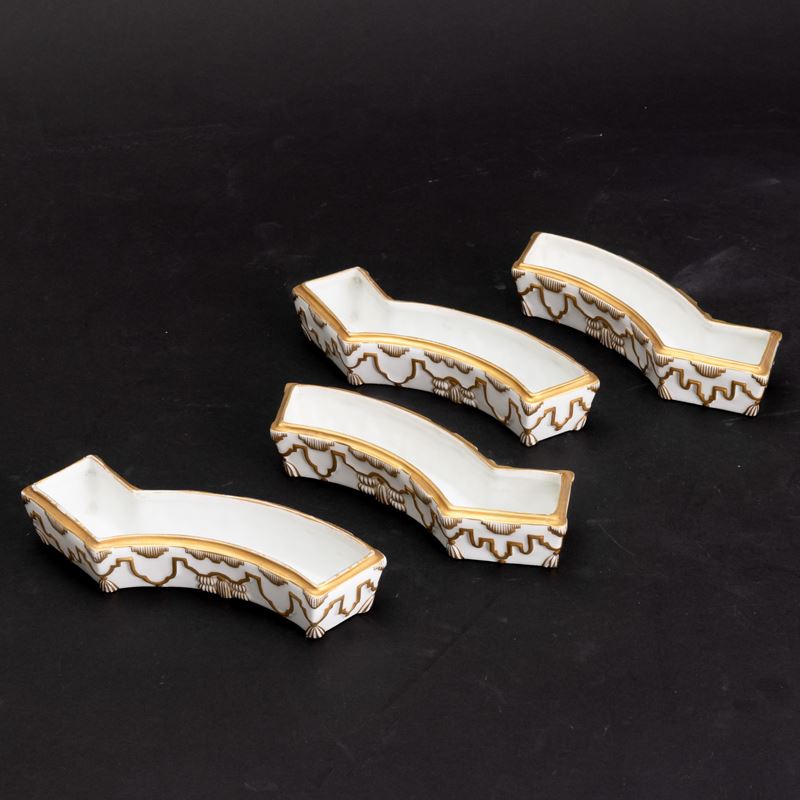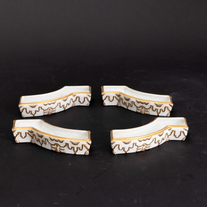 Quattro vaschette ricurve del Trionfo da tavola in porcellana con decoro in oro al terzo fuoco.