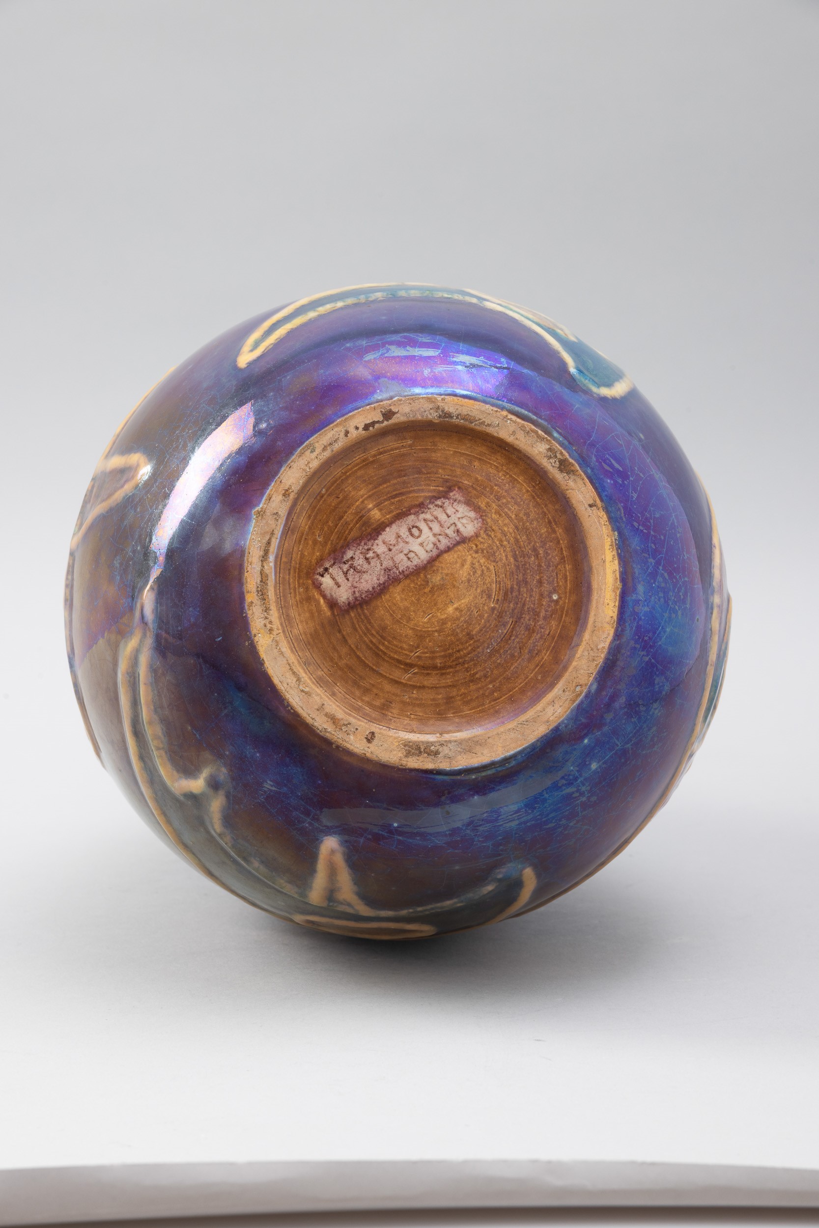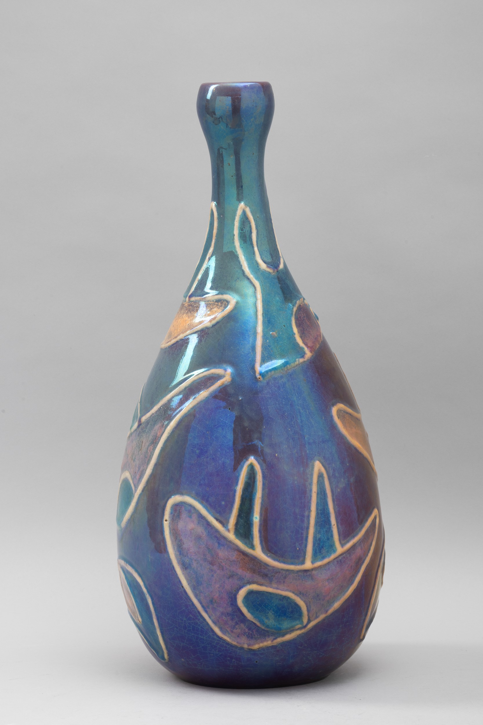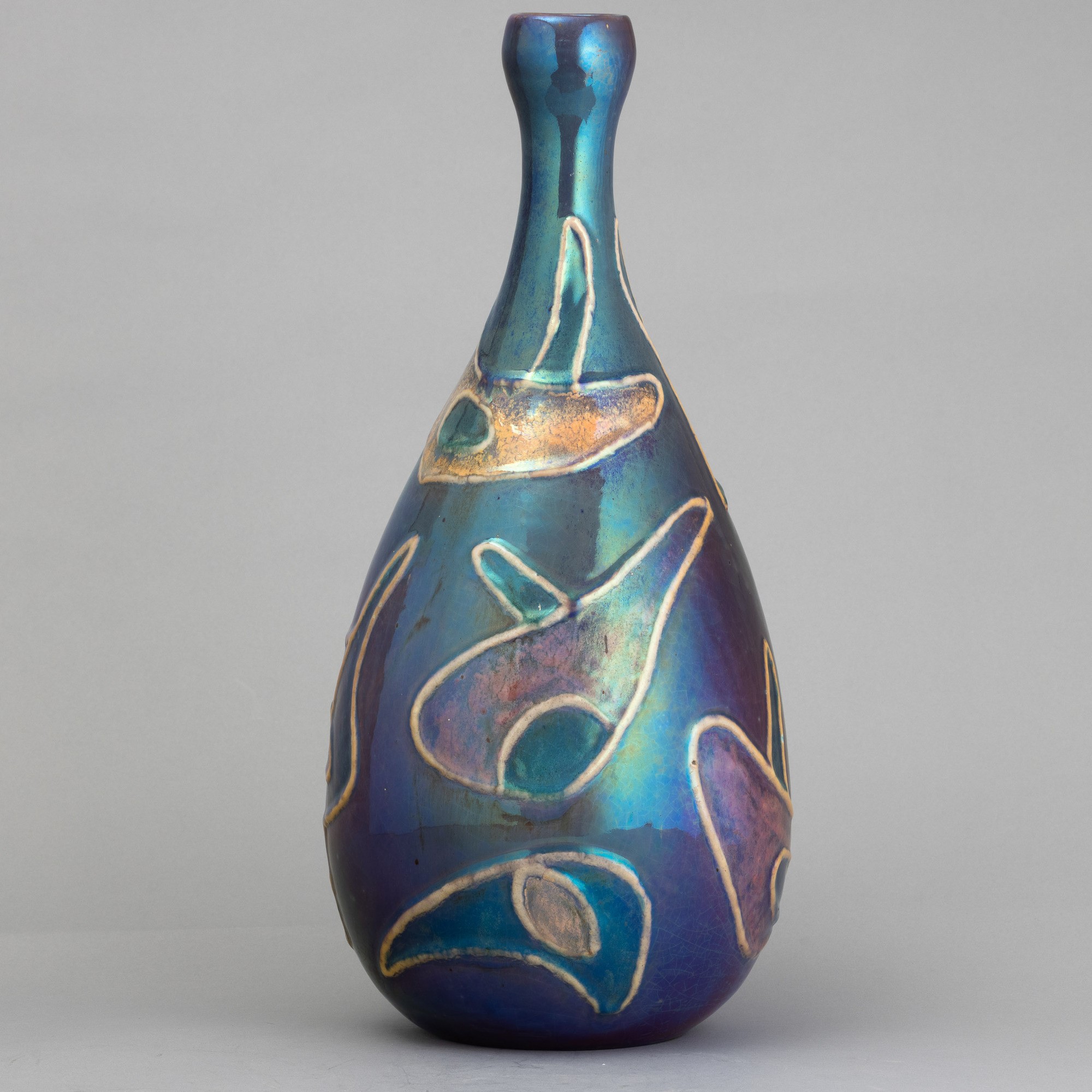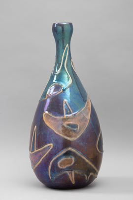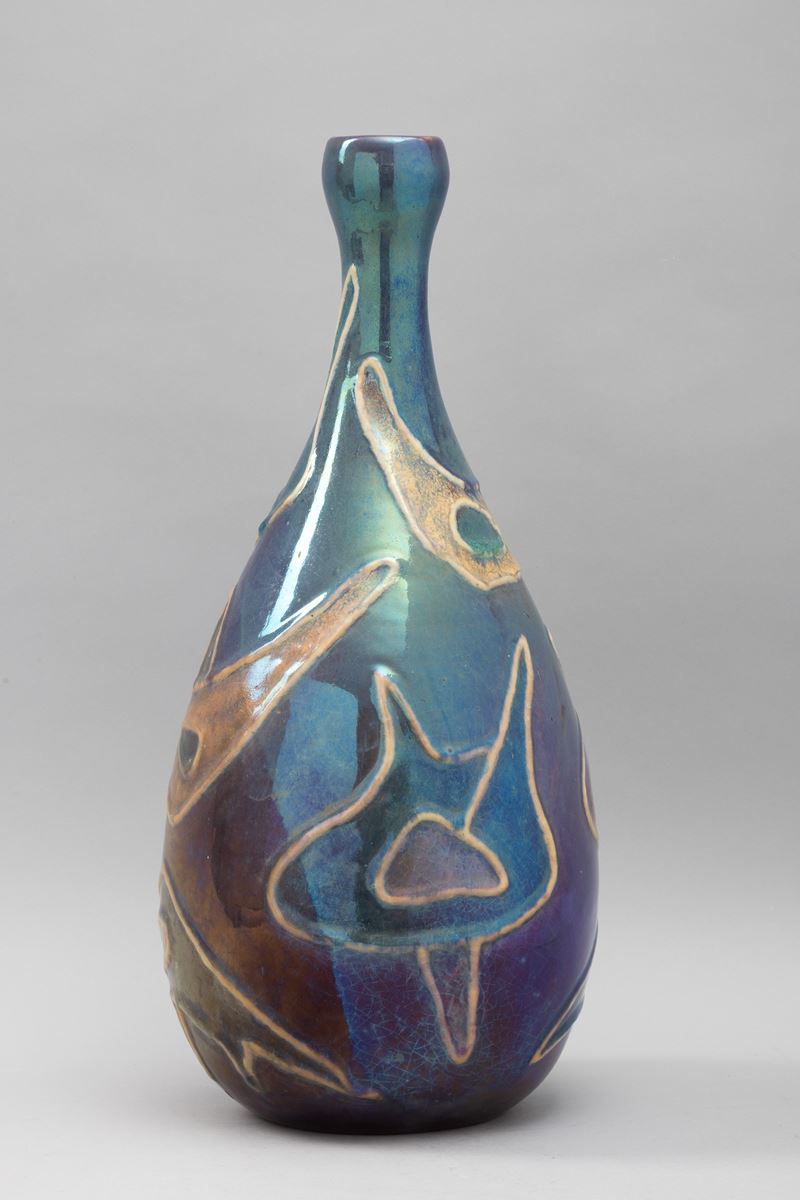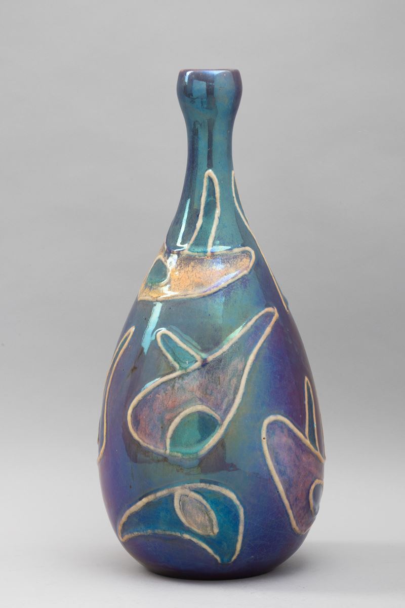 Grande vaso in ceramica maiolicata con decoro astratto.