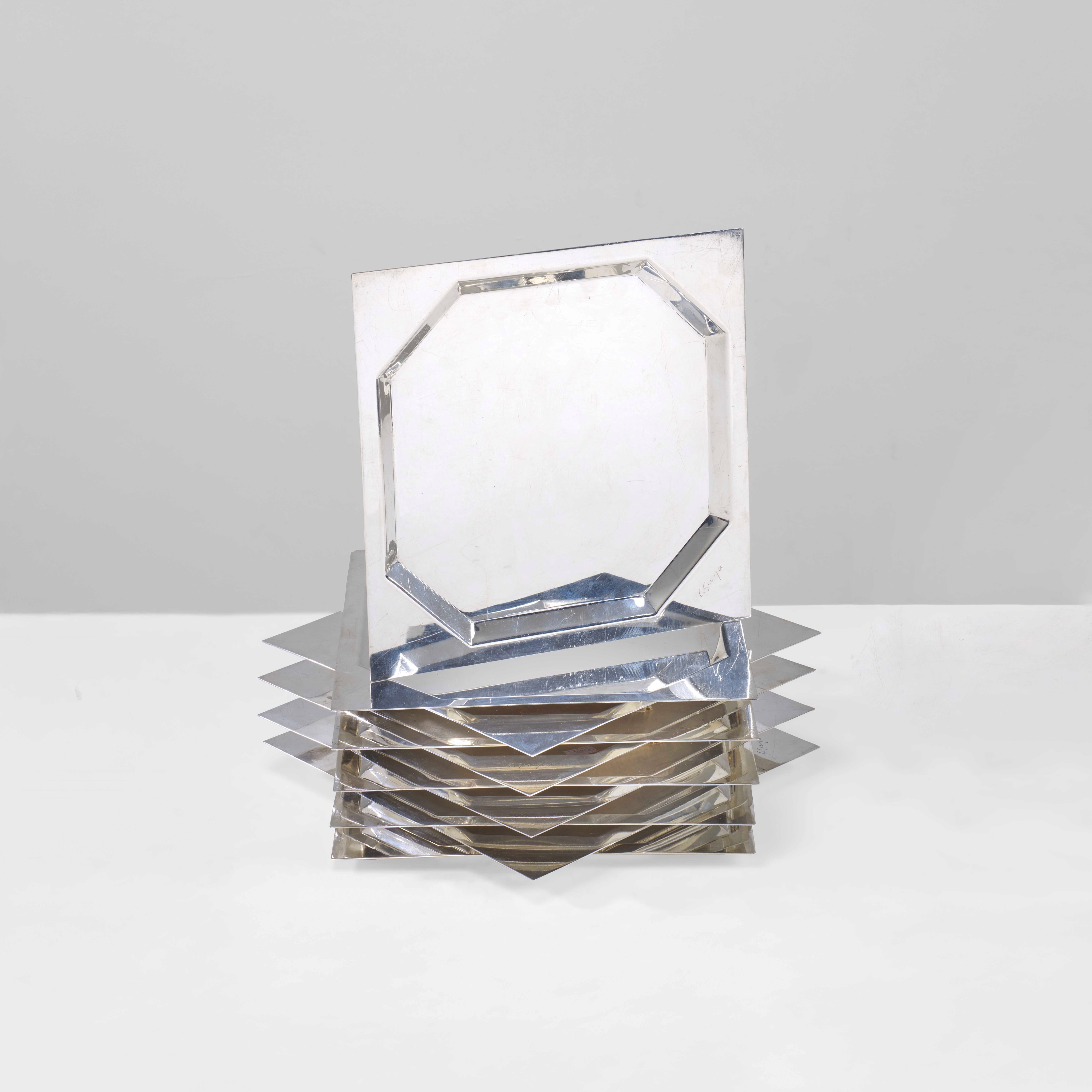 Dieci sottopiatti in argento 925.