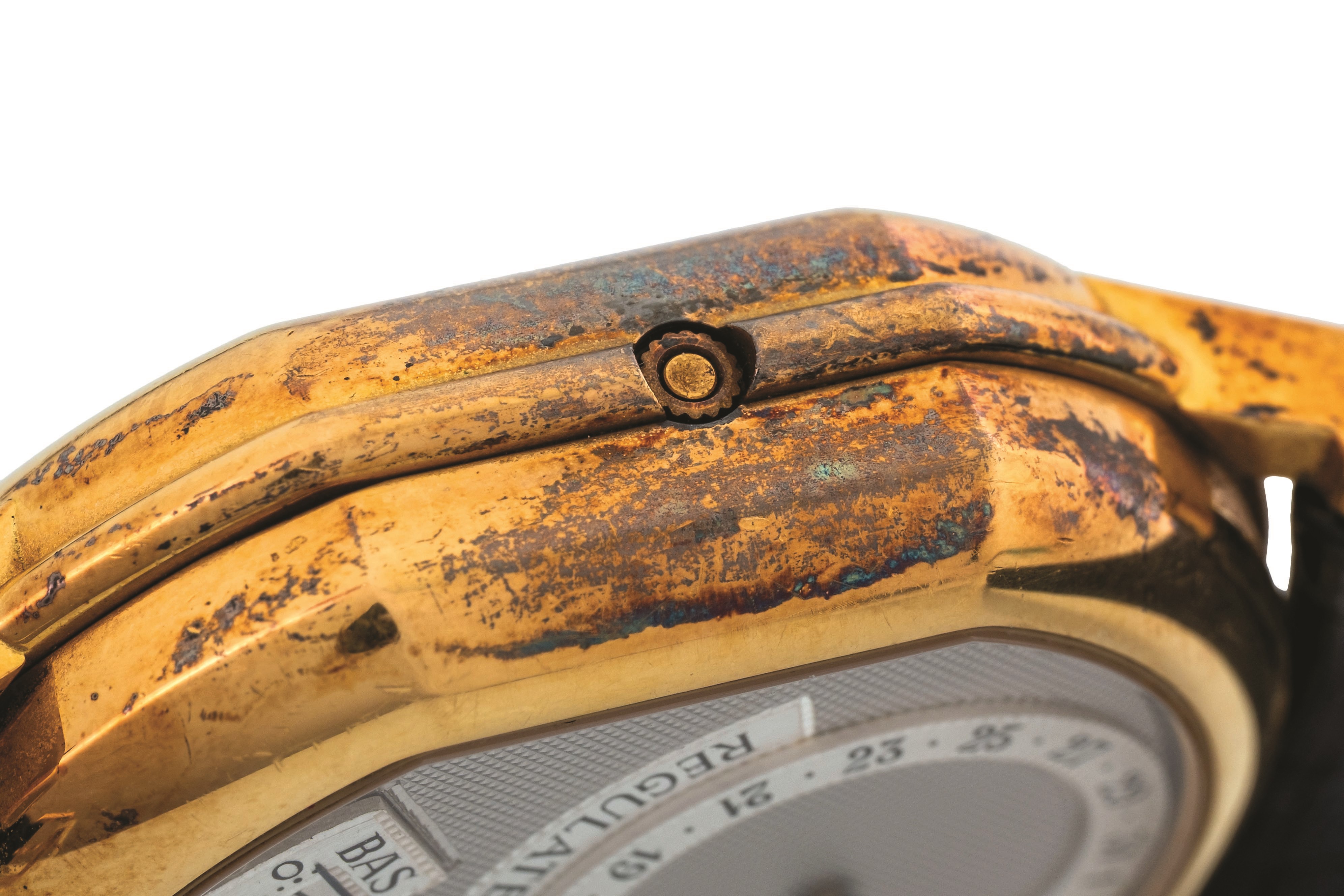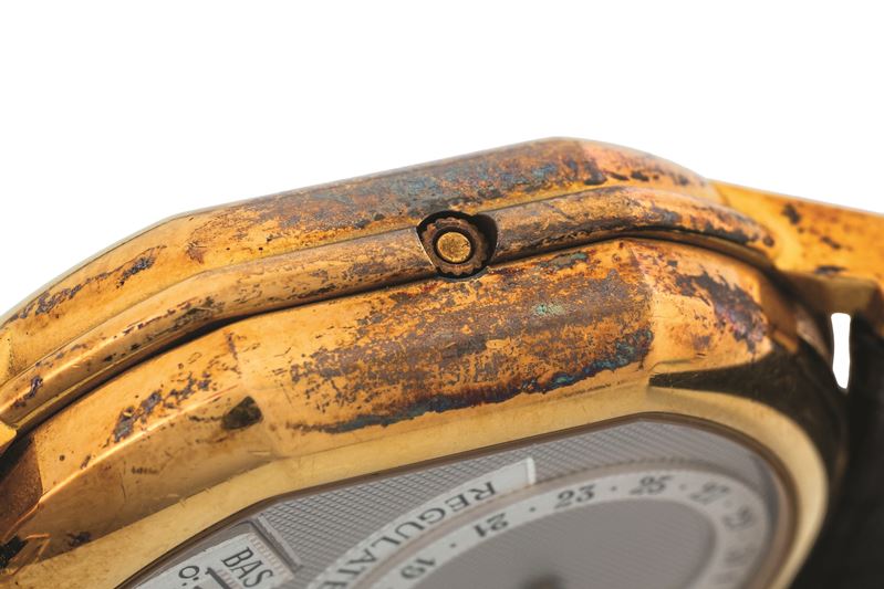 La cassa, come in tutte le creazioni iconiche di Roth, è realizzata in oro giallo ed è caratterizzata dalla forma a doppia ellisse, segno distintivo inconfondibile del marchio.