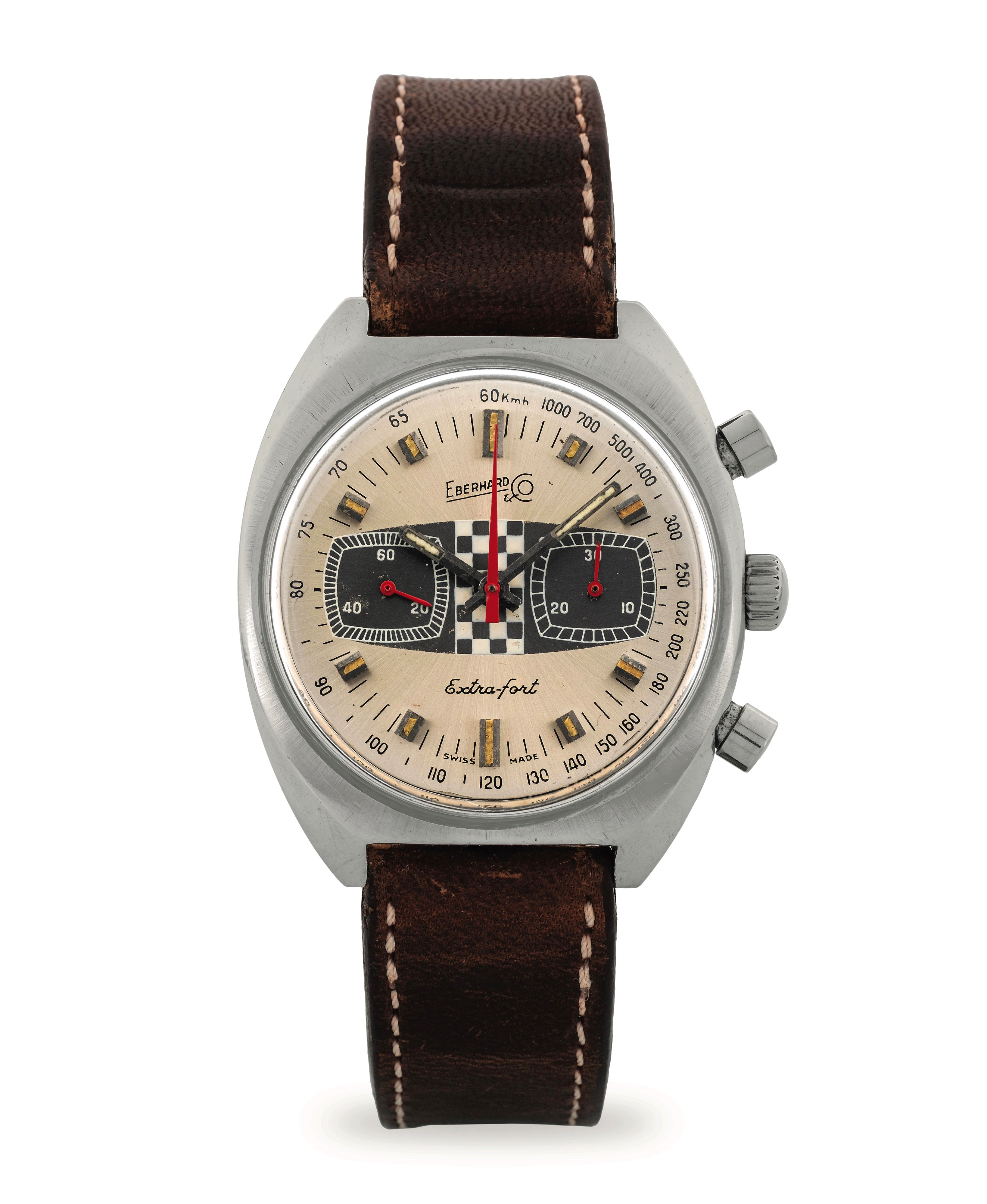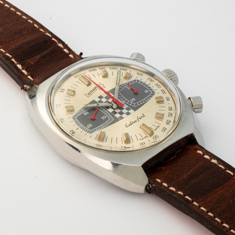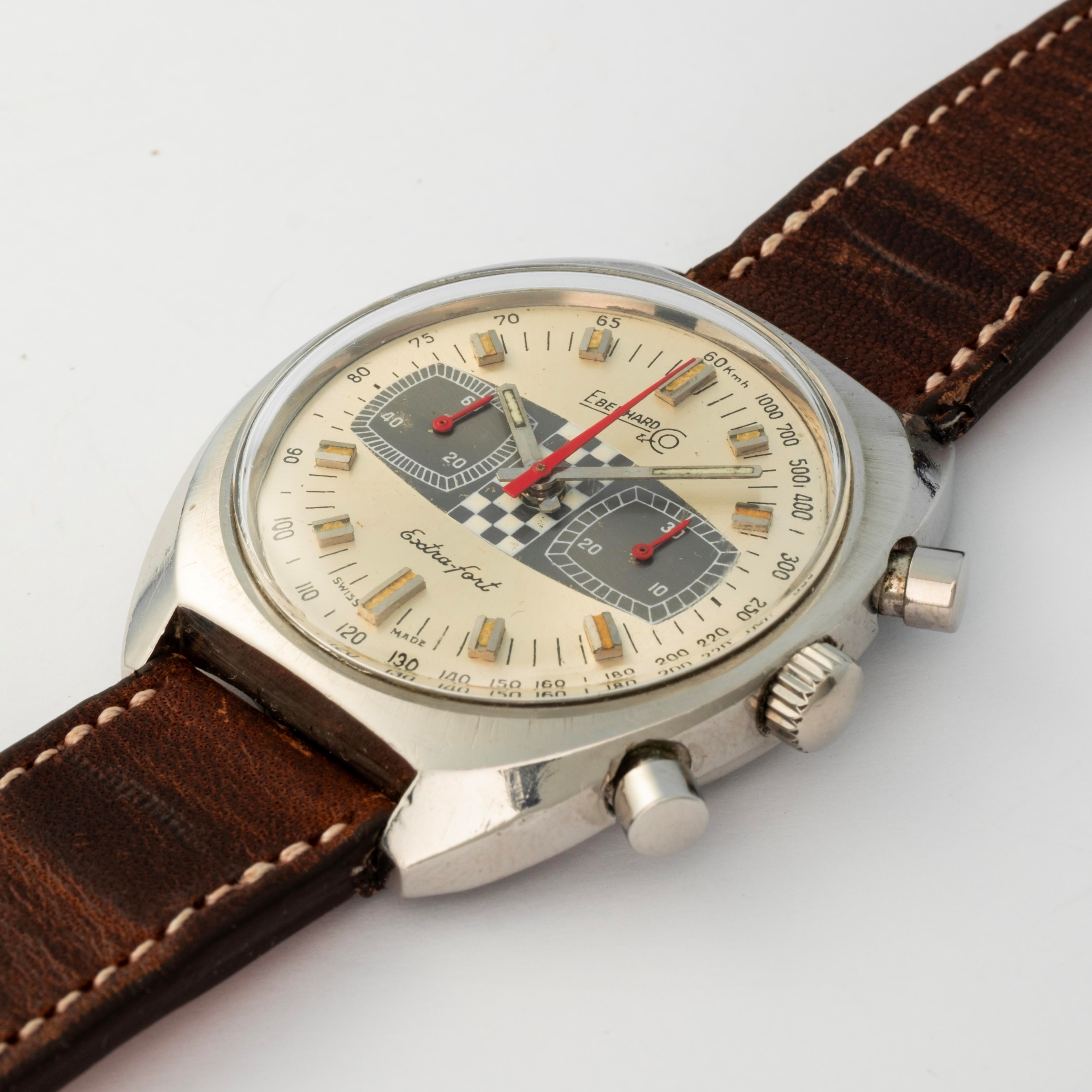 Extra-Fort ref 31006 in acciaio con cassa tonneau, quadrante argenté con grafica "Racing", circa 1970