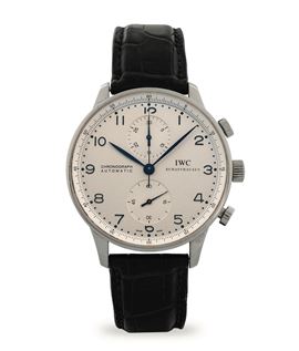 Portugieser Chronograph ref IW371446 in acciaio, quadrante argenté, con scatola, circa 2010