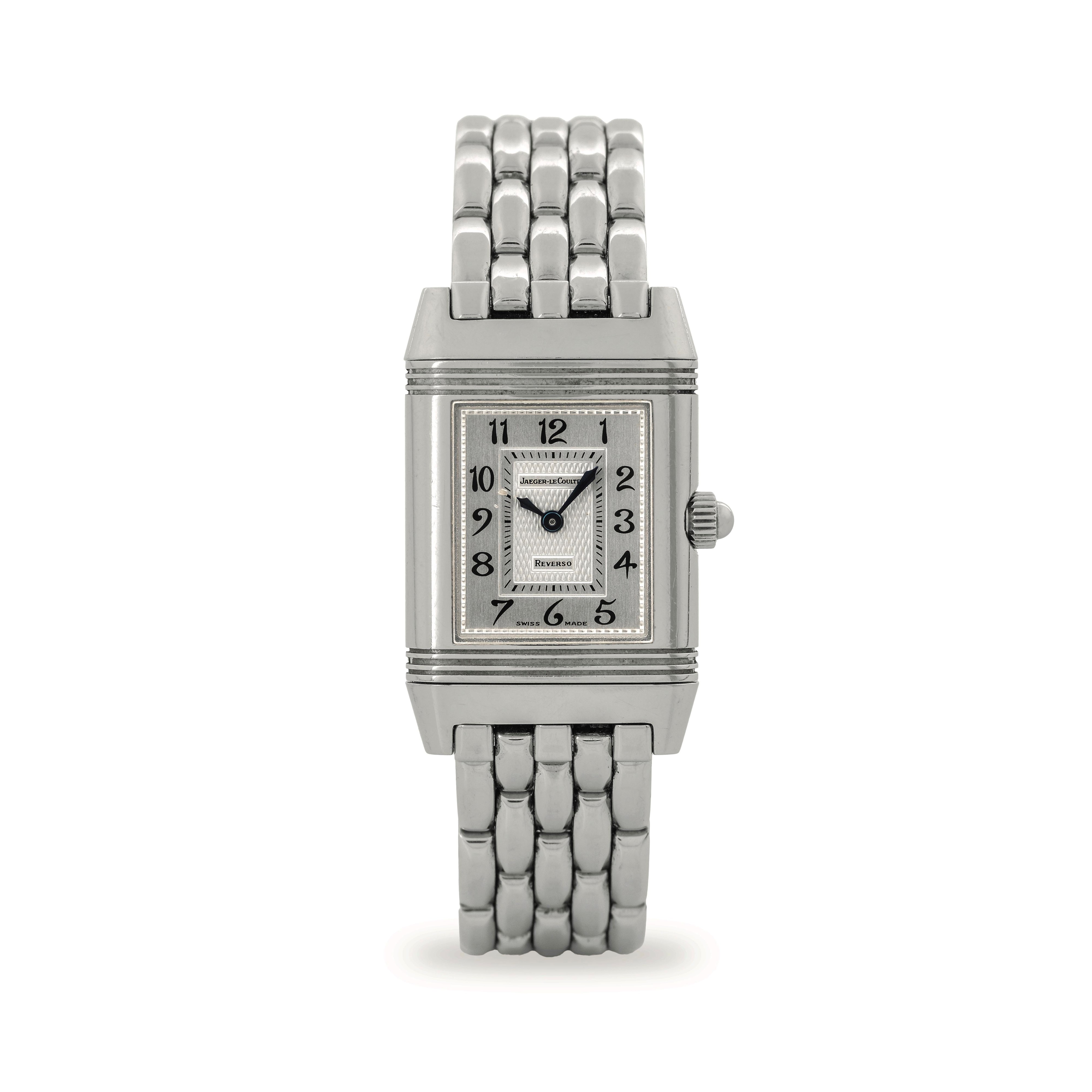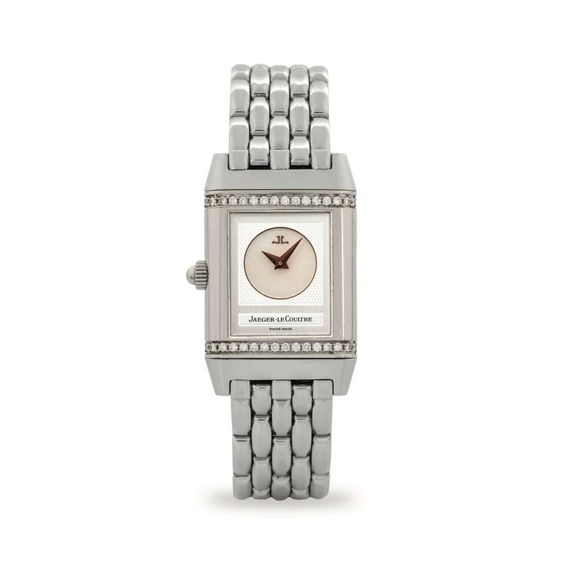 Reverso Duetto ref 266.8.44 in acciaio e brillanti, quadrante argenté, con scatola e garanzia, circa 2000