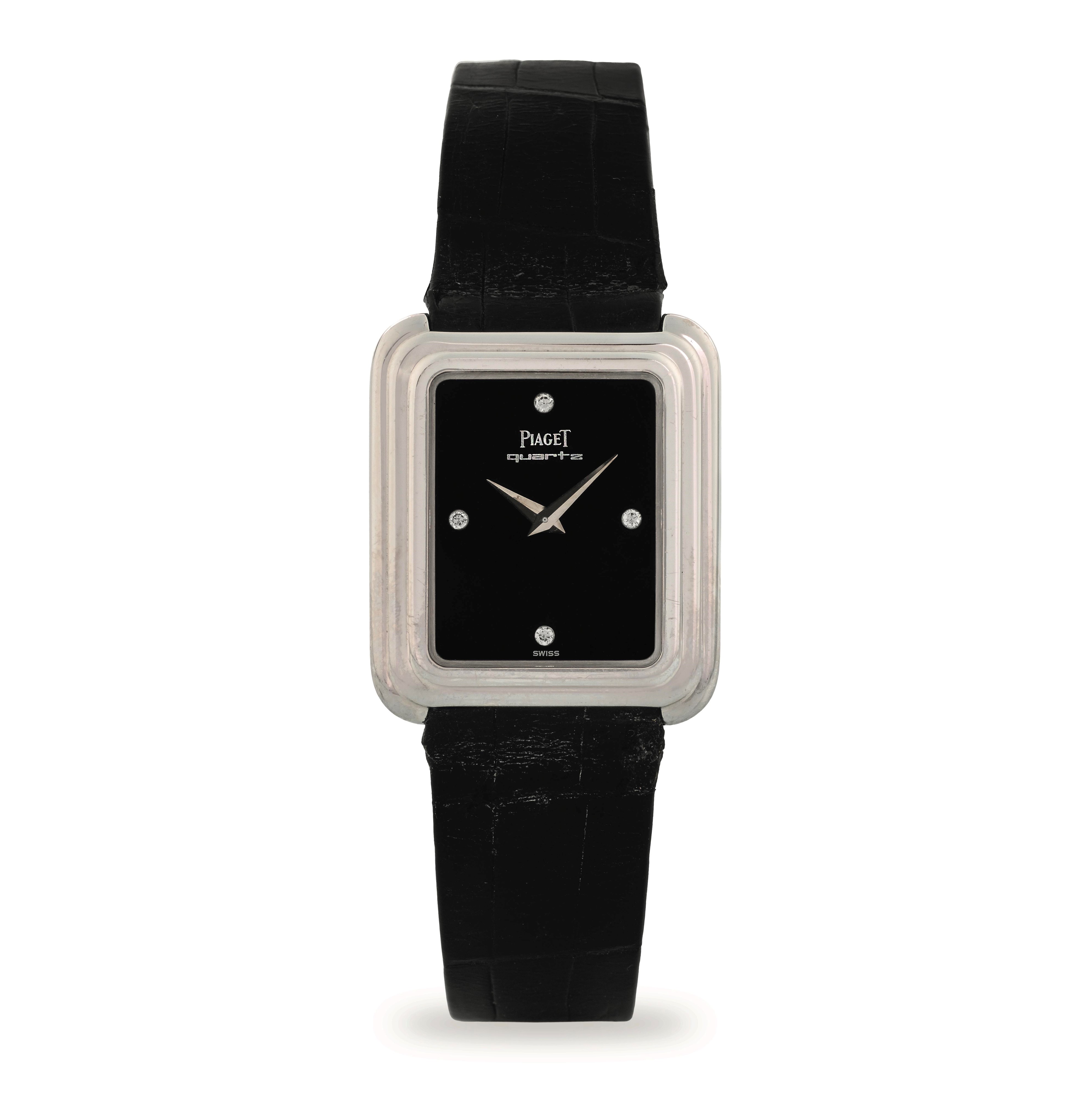 Protocole ref 74101 in oro bianco, quadrante onice con diamanti, circa 1980