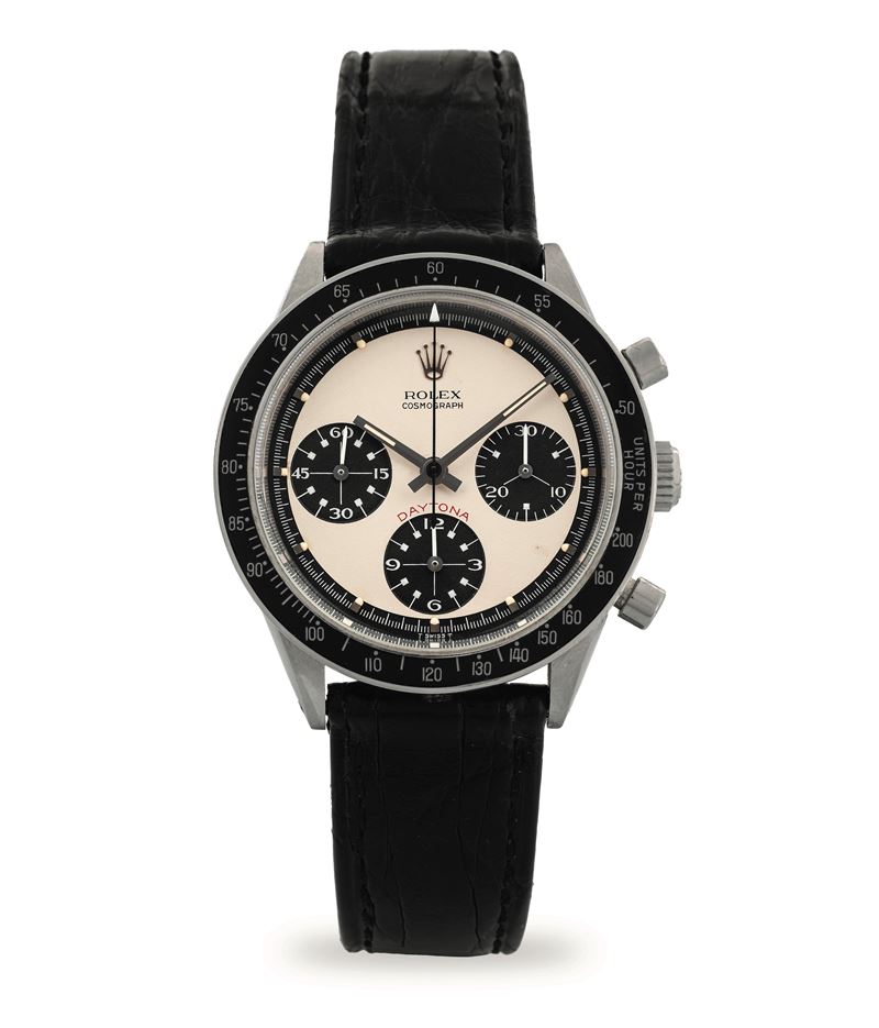Daytona 'Paul Newman' ref. 6241 in acciaio, quadrante bicolore 'Panda', ghiera in bachelite circa 1968