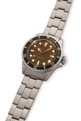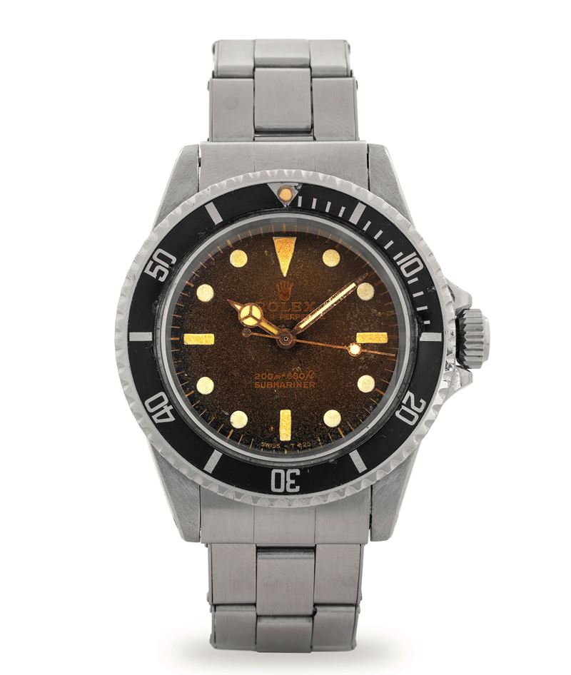 Submariner ref 5513 in acciaio, quadrante nero gilt virato al marrone "Tropical", circa 1964