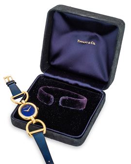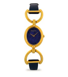 "Staffa" orologio da polso in oro giallo 18k, quadrante lapislazzuli, con scatola originale, circa 1970