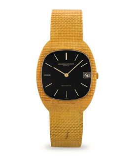 Tonneau ref 2034 Q in oro giallo 18k con bracciale lavorato integrato, quadrante nero laccato, con scatola originale, circa [..]
