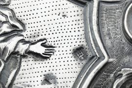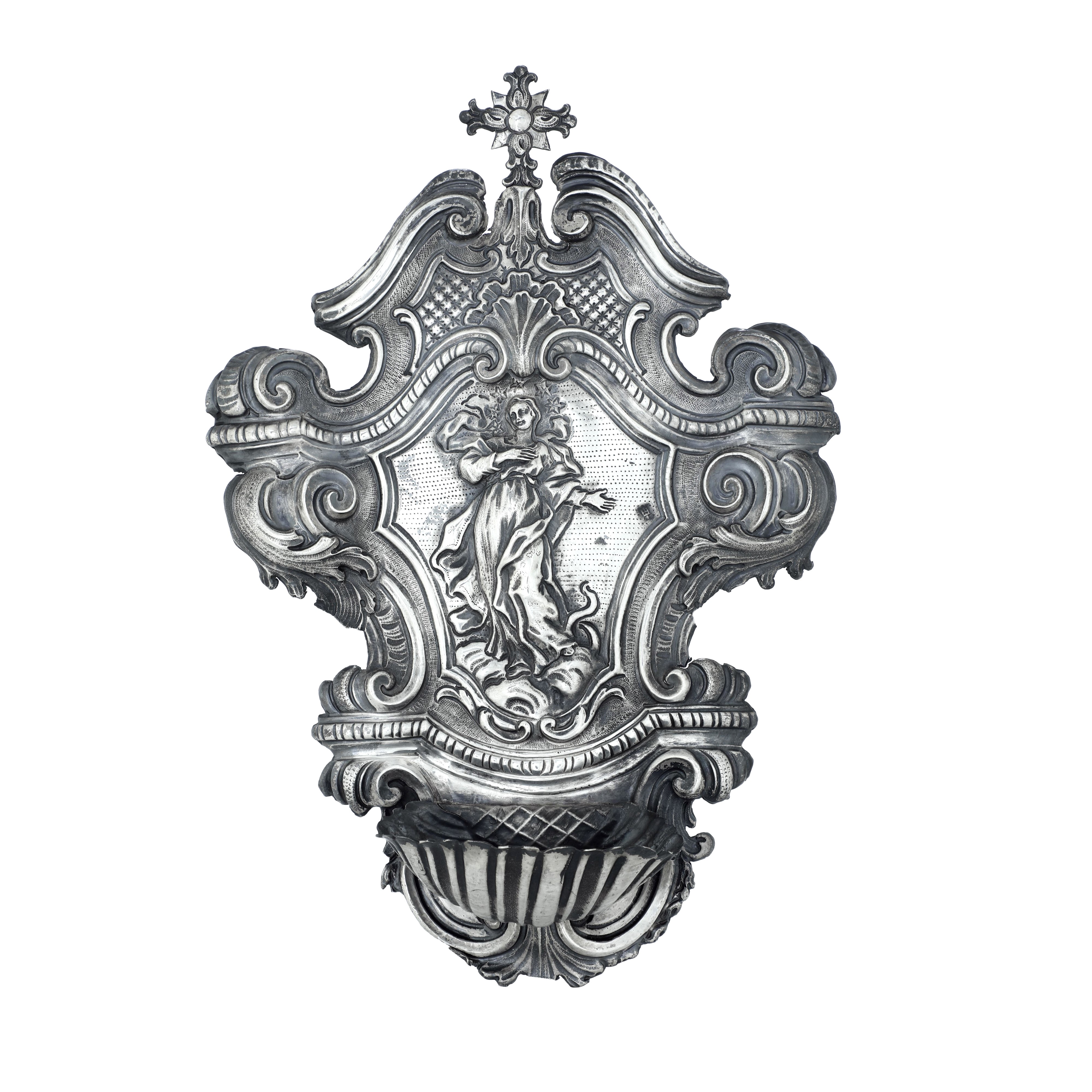 Genova, metà del XVIII secolo, marchio della "Torretta" con datario (17)49 Acquasantiera con l'Immacolata