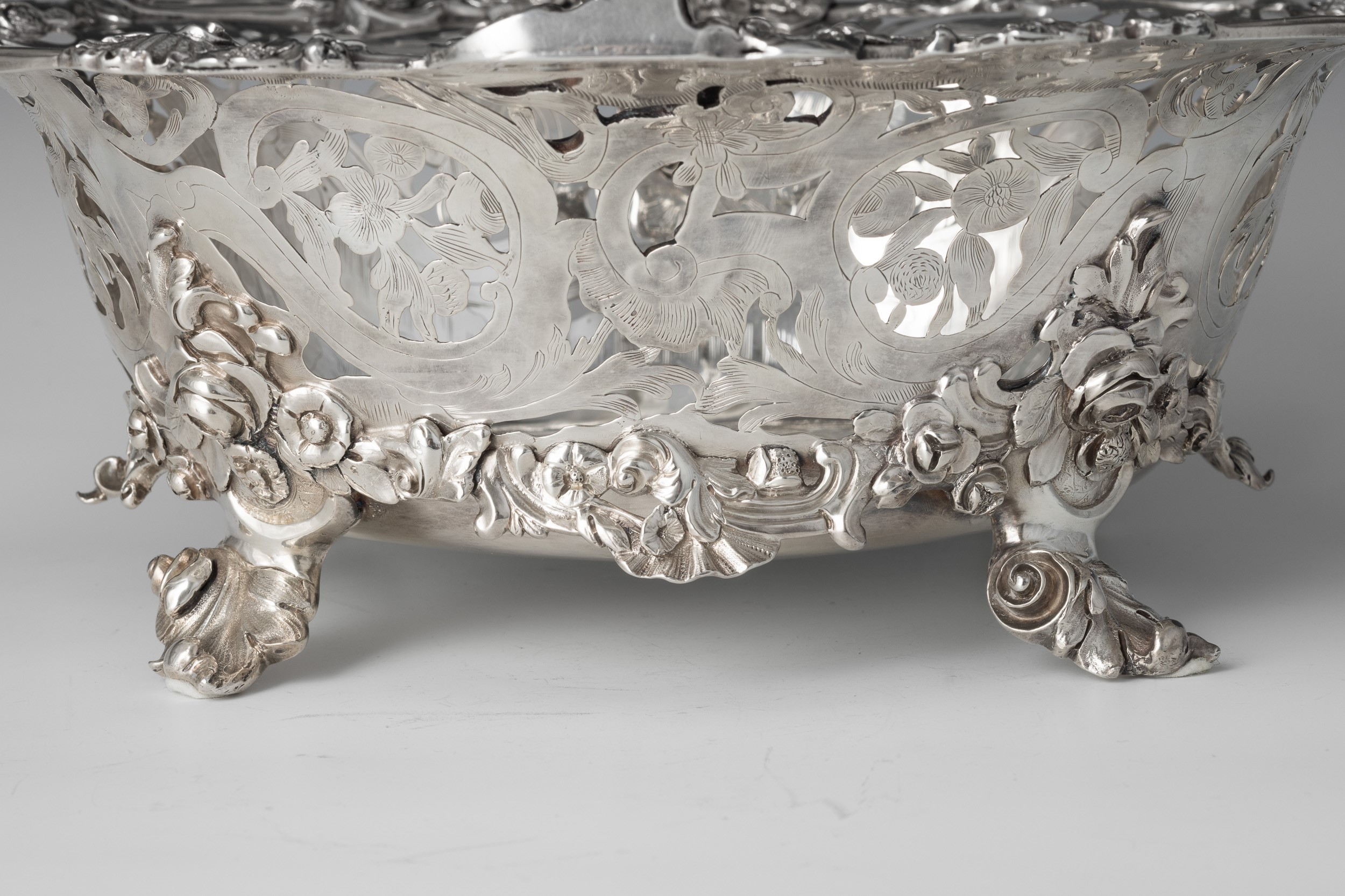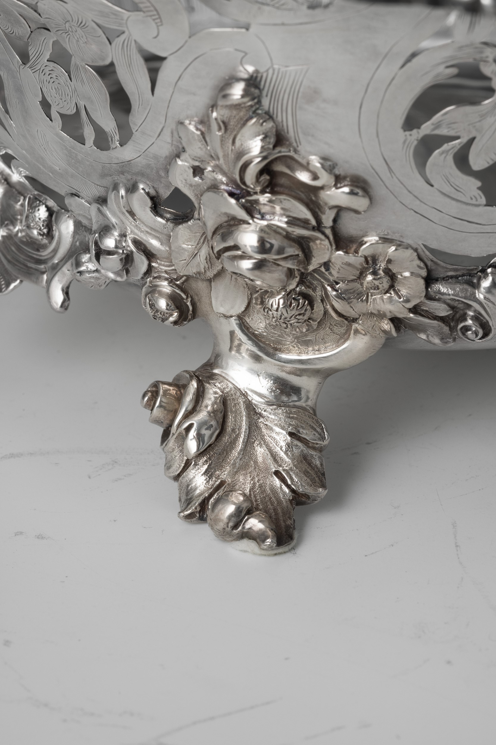 Argento fuso, sbalzato, traforato e cesellato