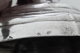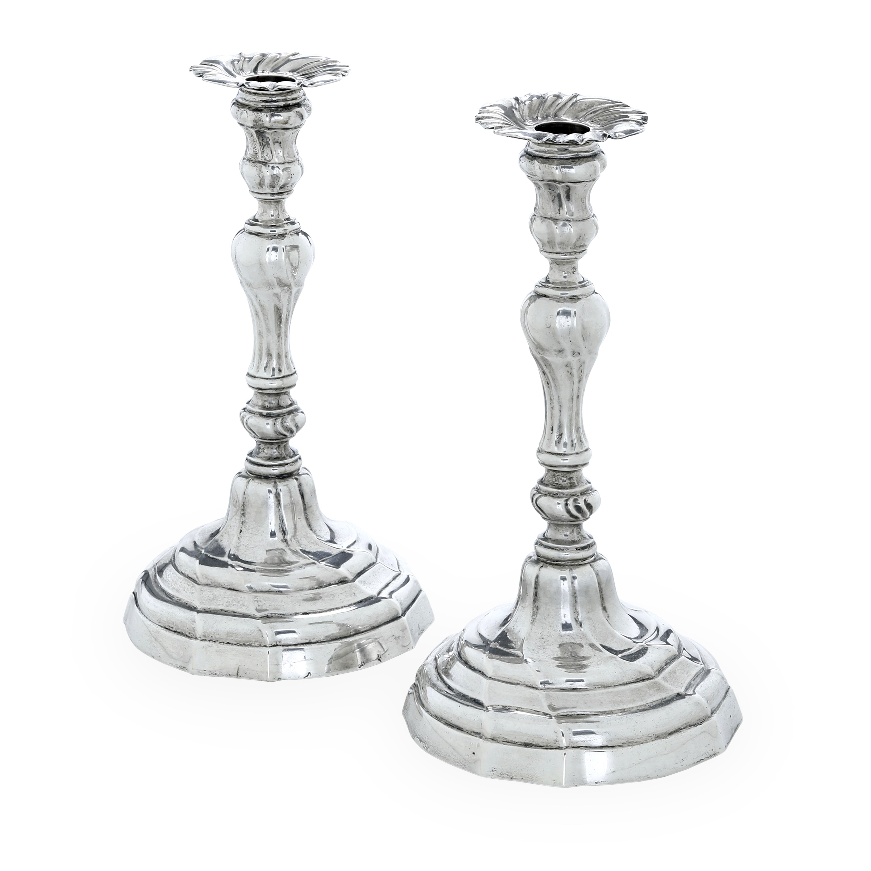 Alto piede circolare sagomato e fusto a balaustro con nervature a torchon