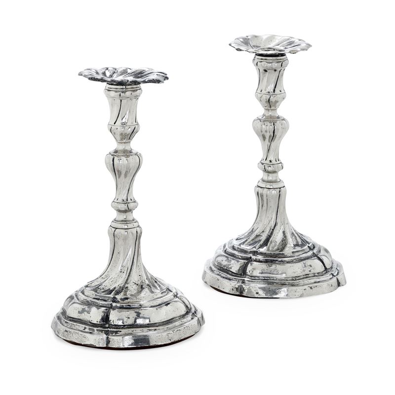 Milano, seconda metà del XVIII secolo, bottega all'insegna della Luna. Argentiere Giuseppe Marone (1784-1812ca) Coppia di candelieri