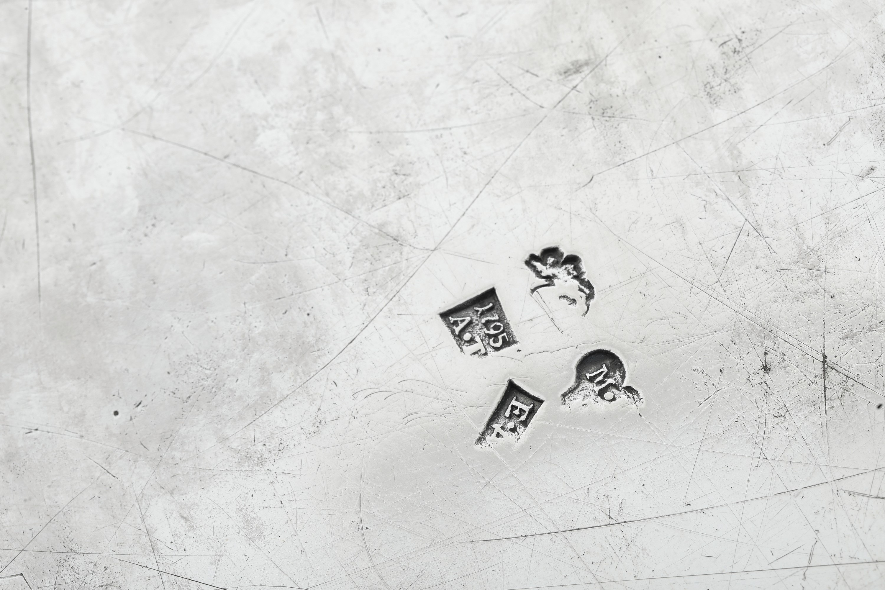 Mosca 1795. Assaggiatore Andrey Titov, argentiere Egor Danilov e marchio del Alderman entro riserva a forma di cuore (parziale di difficile lettura) Importante vassoio neoclassico