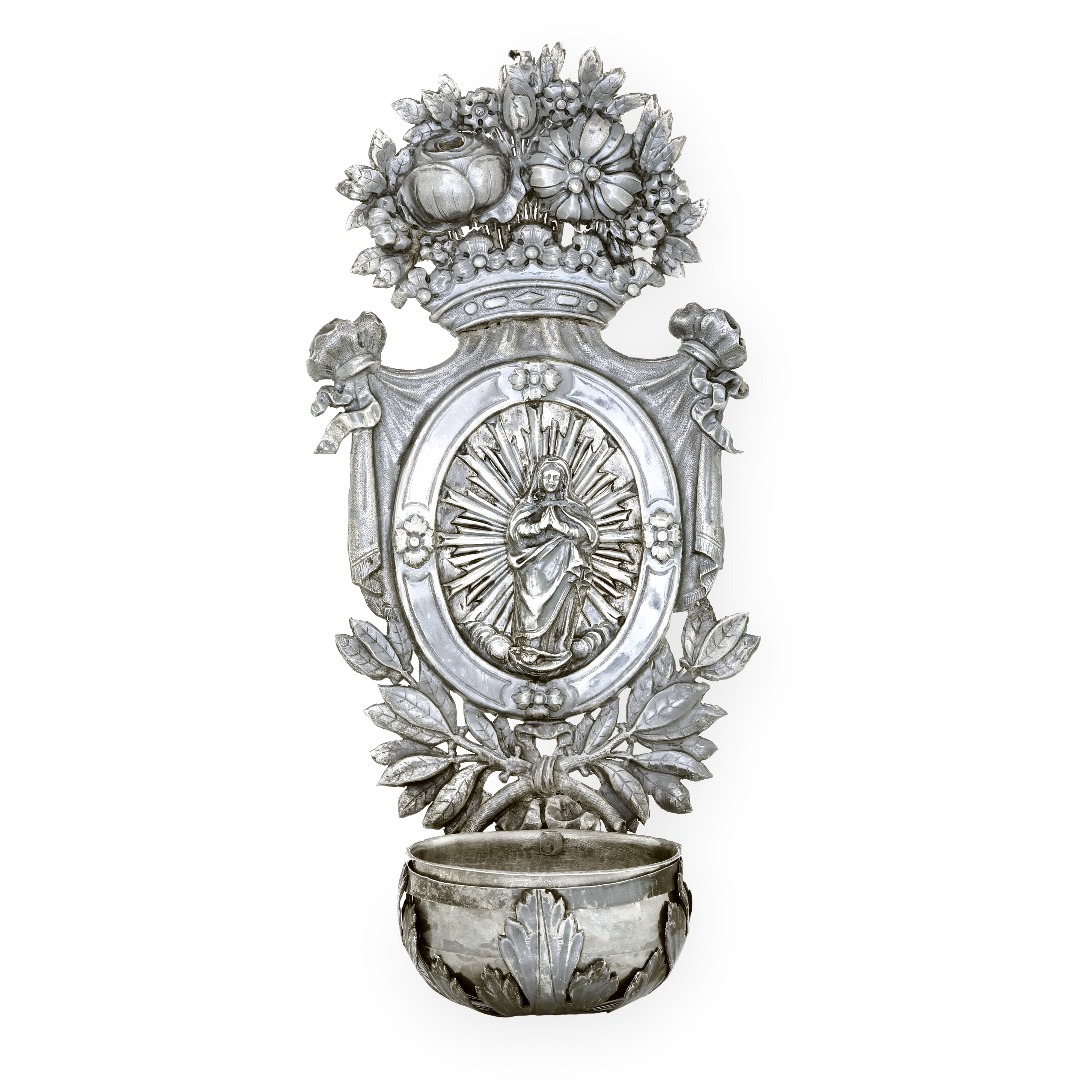 Spagna, Barcellona XVIII secolo Acquasantiera con raffigurazione della Madonna
