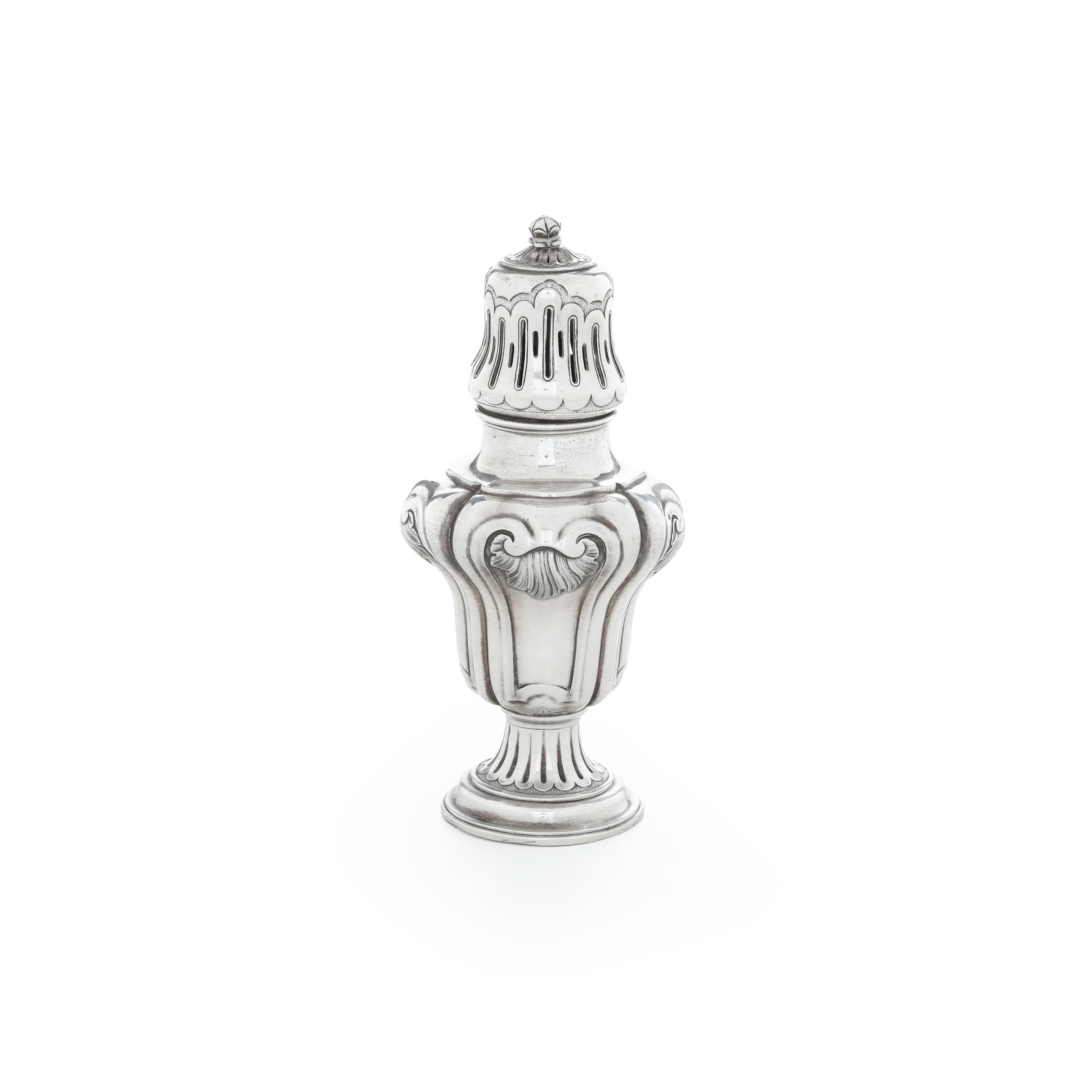 Corpo a balaustro nervato con eleganti decori a volute e riserve