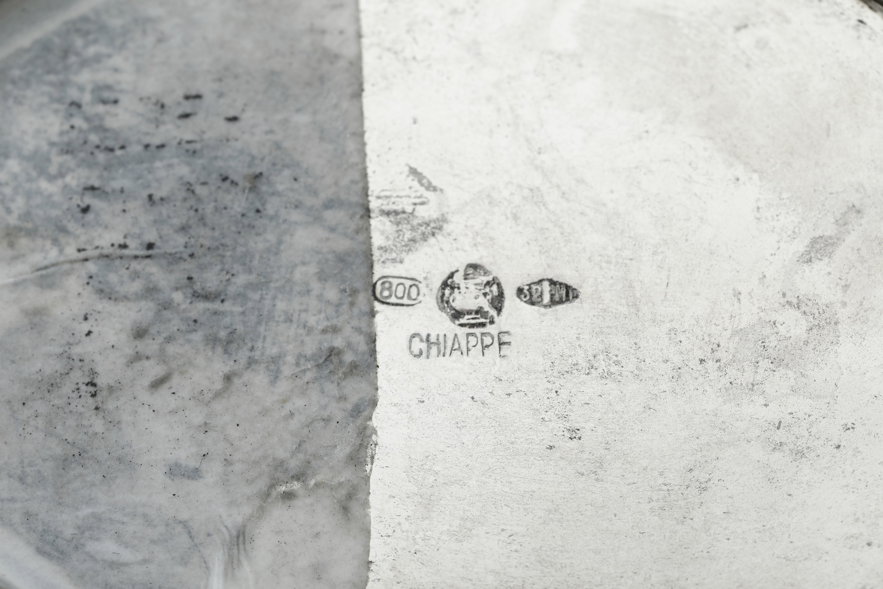 Argenteria artistica italiana, marchio con fascio littorio in uso dal 1935 al 1945, argentiere Messulam, Milano per gioielleria [..]