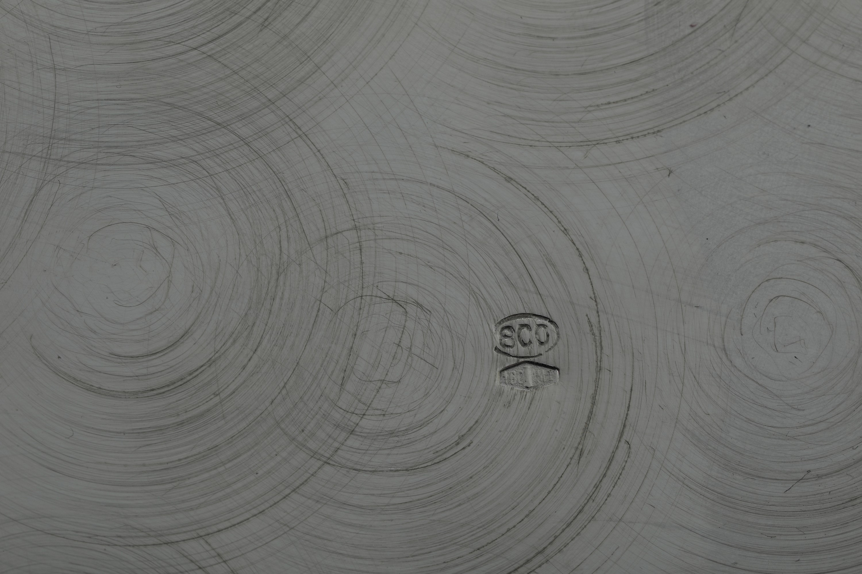 Argenteria artistica milanese, marchio con fascio littorio in uso dal 1935 al 1945. Argentiere M. de Ponti & C Portagioie