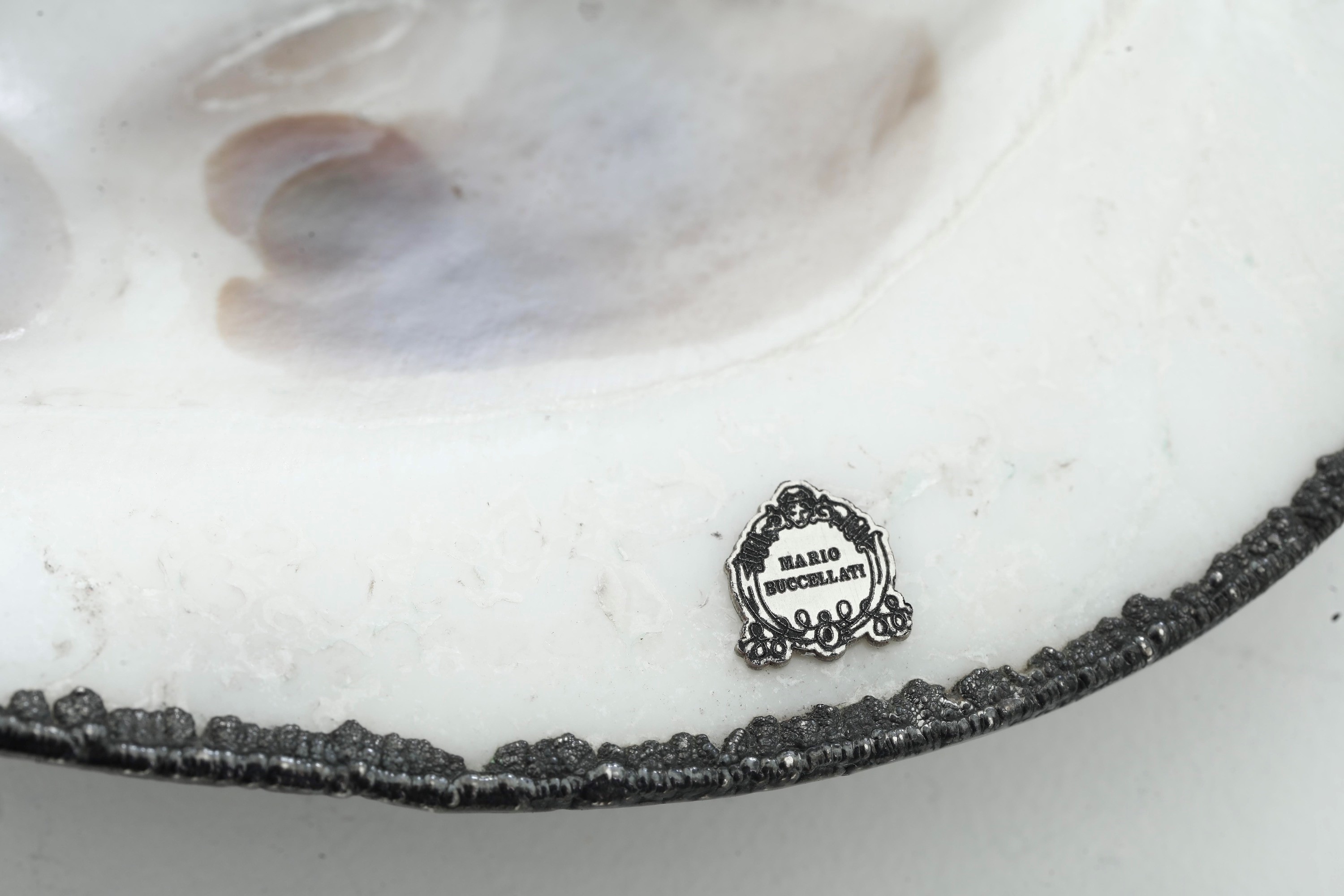 Etichetta a scudo Maison Mario Buccellati. Italia XX-XXI secolo Conchiglia ricoperta in argento