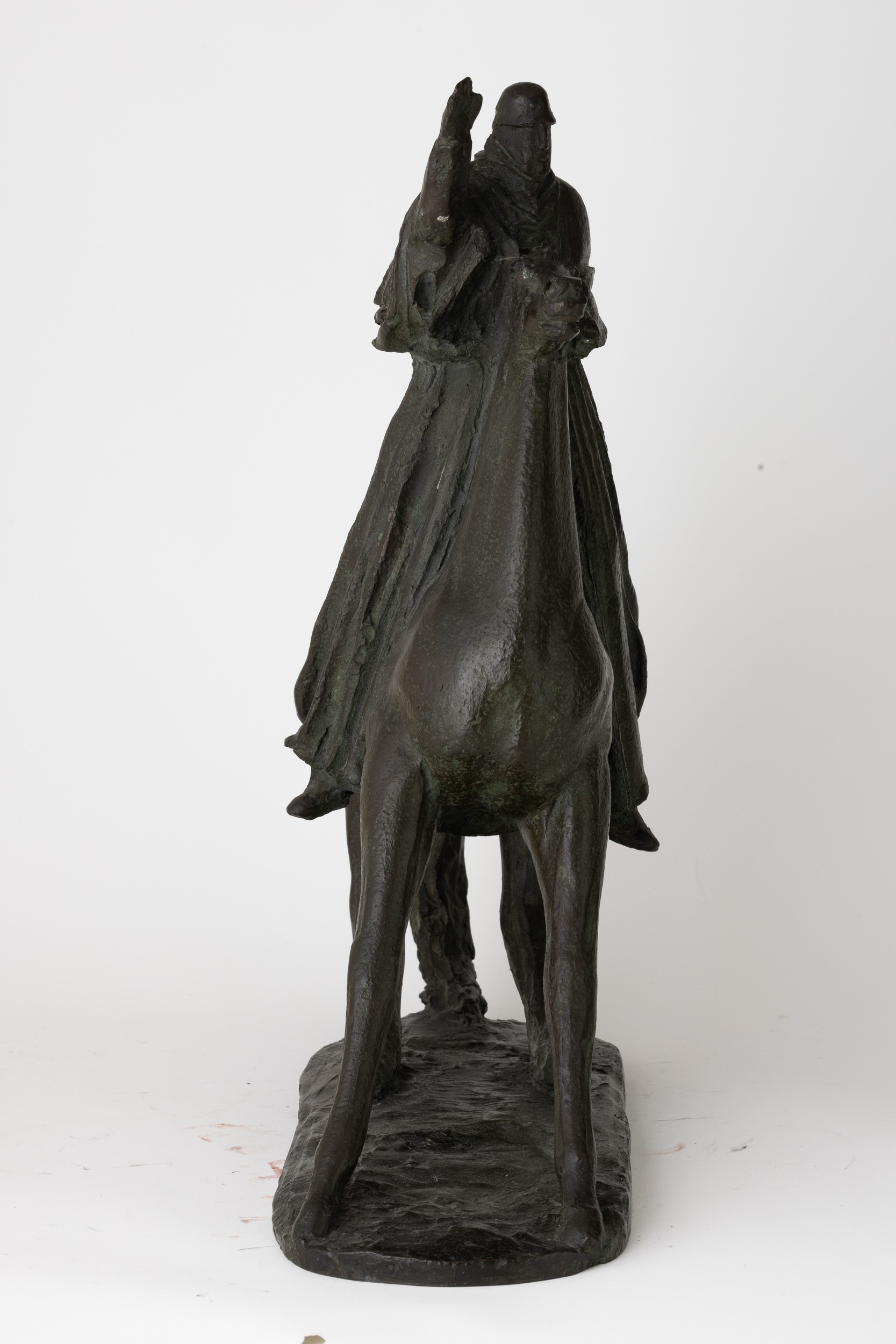 La scultura raffigura Emanuele Filiberto a cavallo, ricoperto da un grande mantello, il quale ferma il cavallo che si impunta sulle zampe anteriori e solleva la mano destra in segno di saluto controbilanciando in avanti la massa del destriero che è tutta spostata verso le gambe posteriori piegate.