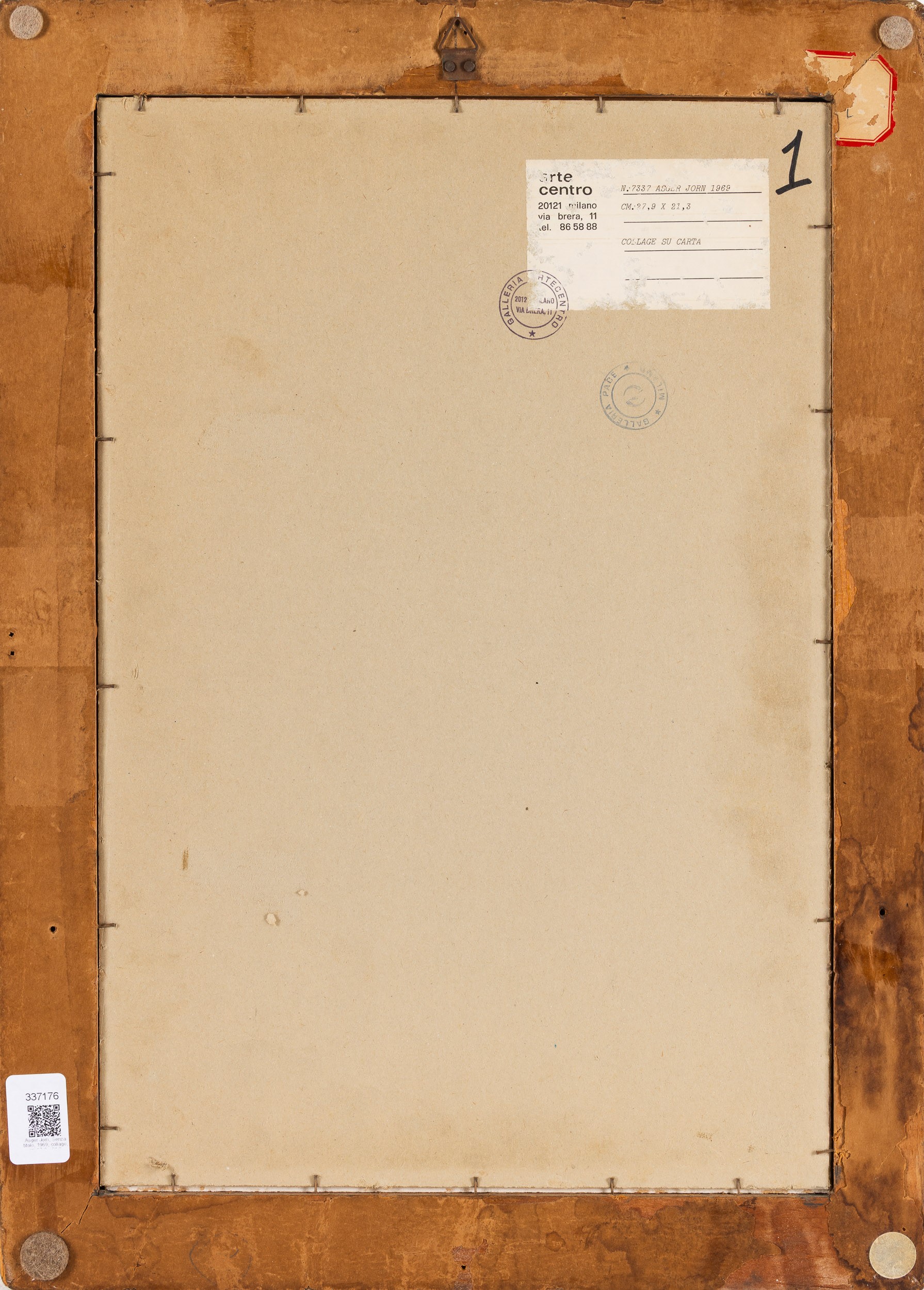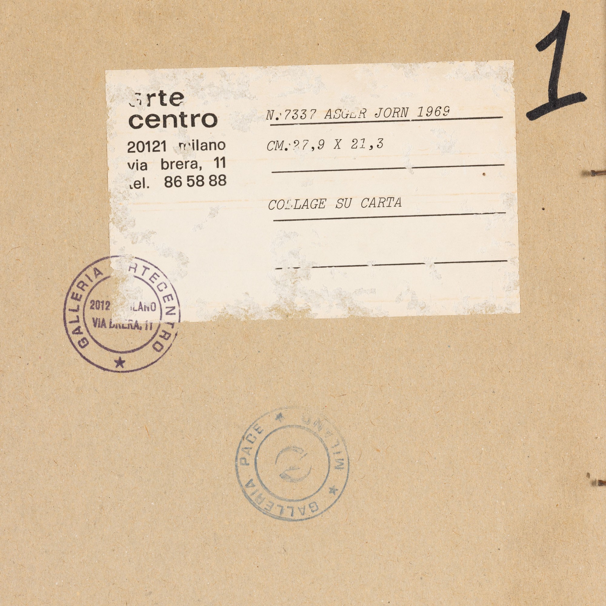 Etichetta al retro della Galleria Arte Centro, Milano
