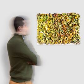 acrilico, carta di giornale e stucco su Tela