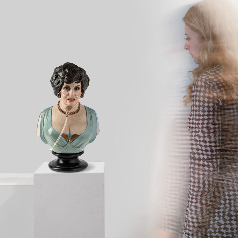 scultura in bronzo patinato e dipinto