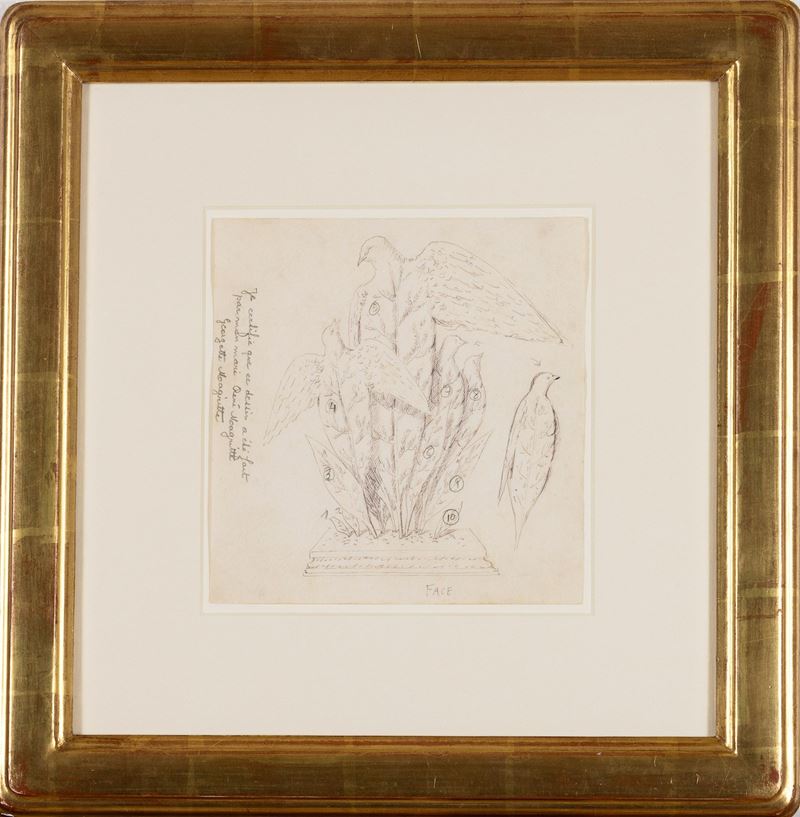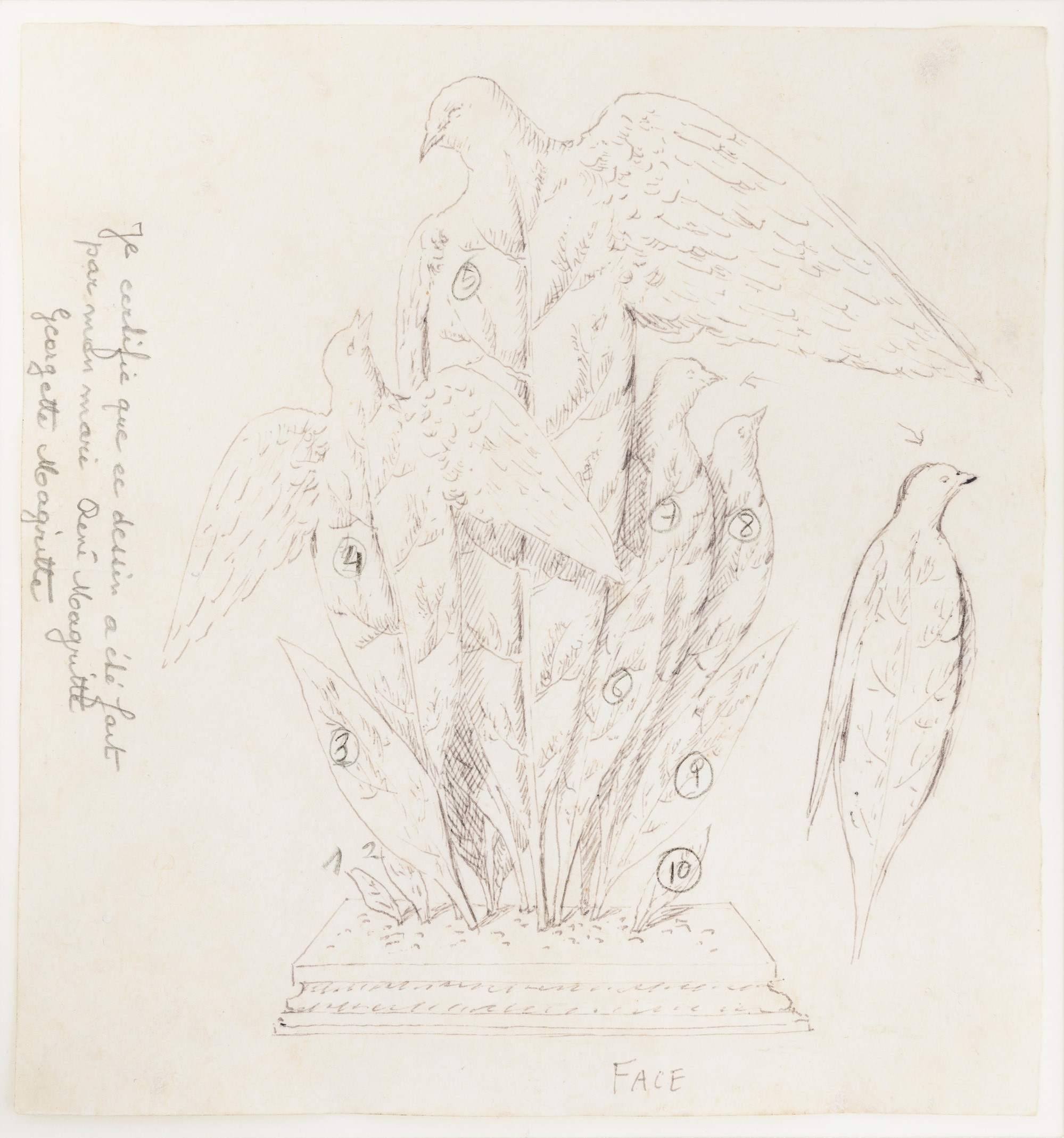 dichiarazione di autenticità da parte di Georgette Magritte, moglie dell'artista a lato del foglio al centro