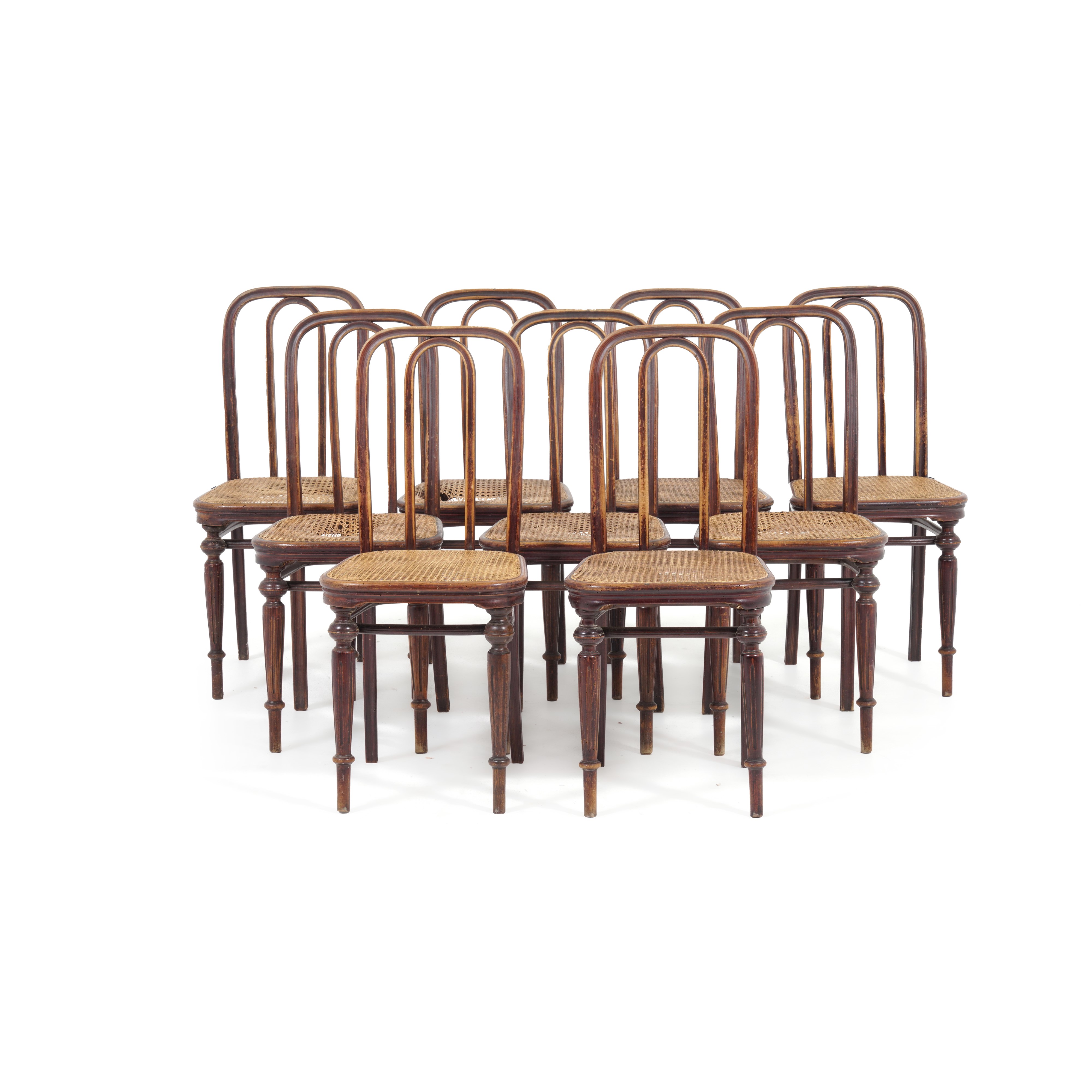Nove sedie in legno intagliato. XX secolo