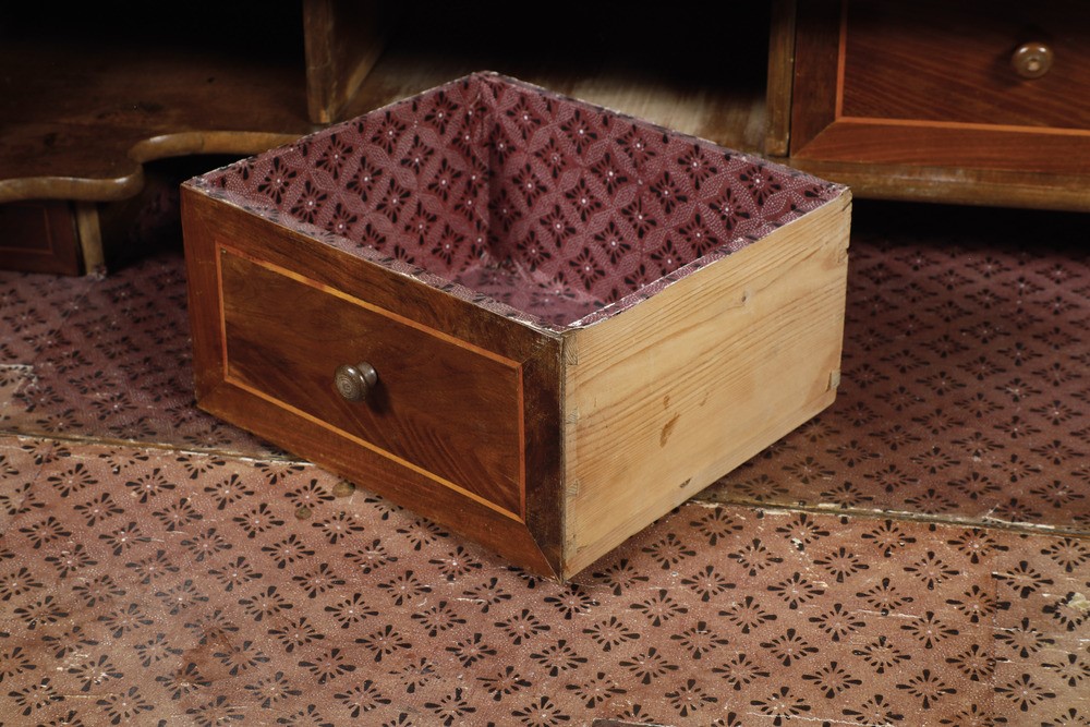 Lastronato e filettato, riserve in radica di pioppo a decorare i cassetti e le ante