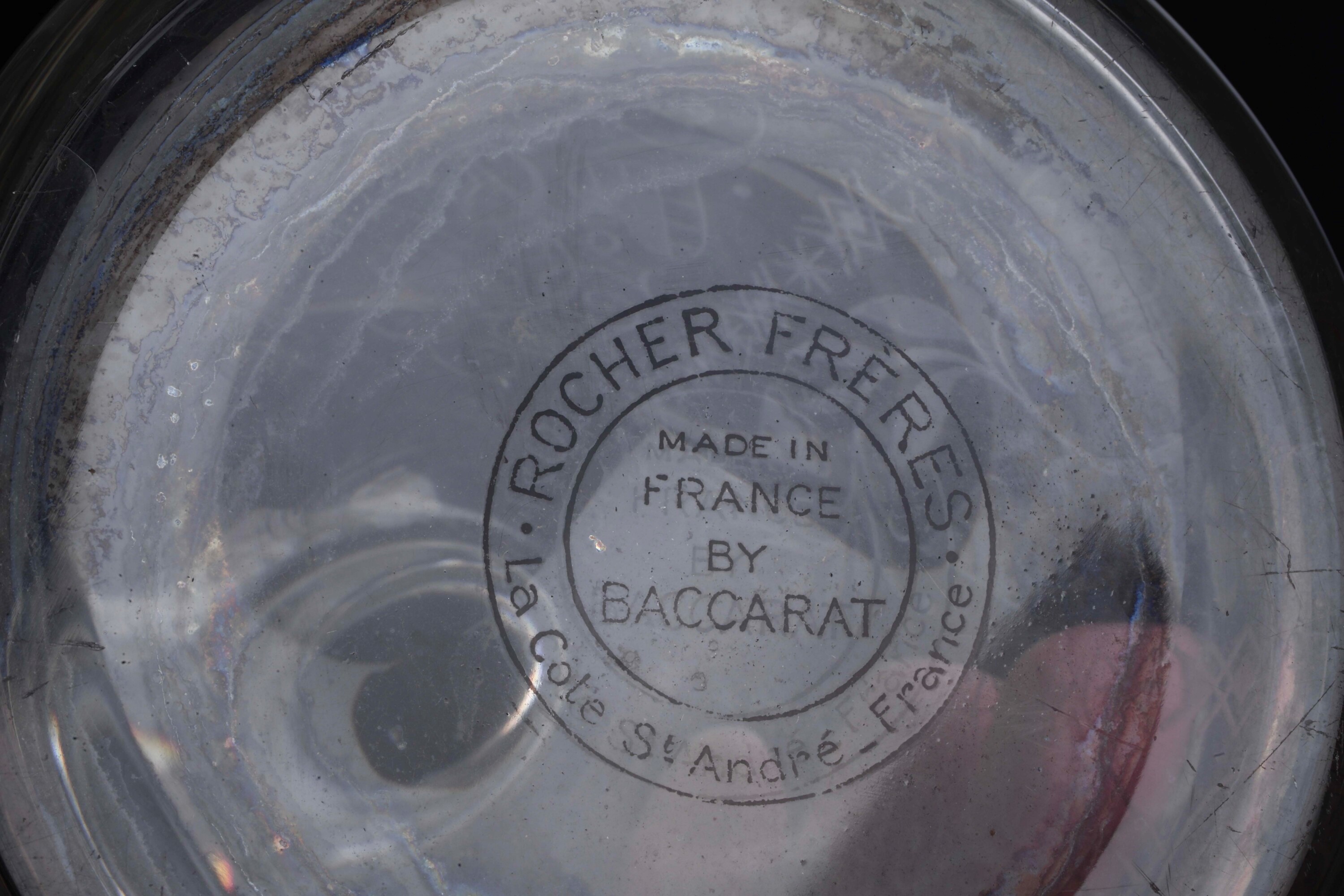 Cristallo. Marca: simbolo grafico con “Made in France by Baccarat” e “Rocher Frères La Cote St. André France” inciso all’acido. Altezza cm 24. Conservazione: ottima