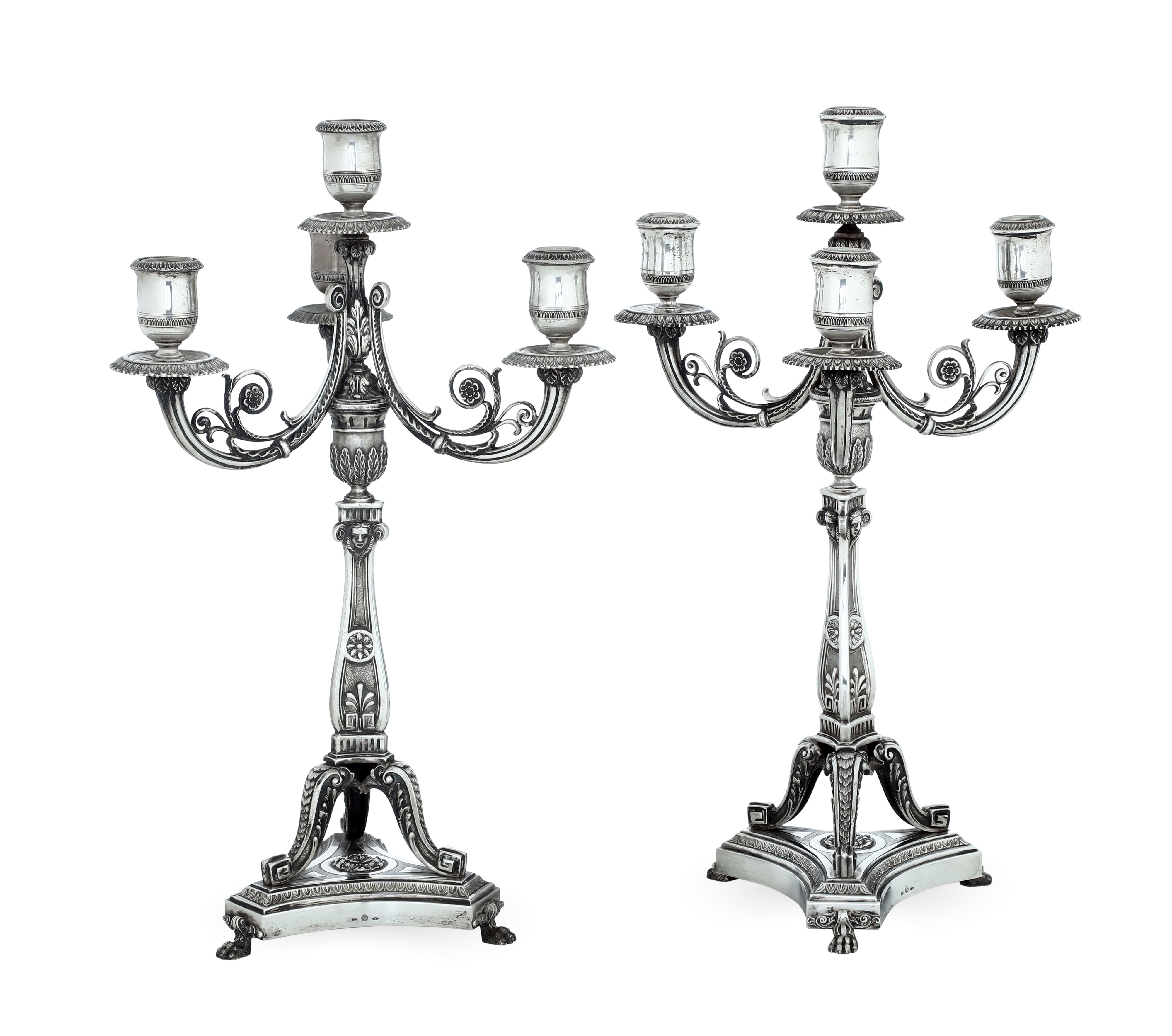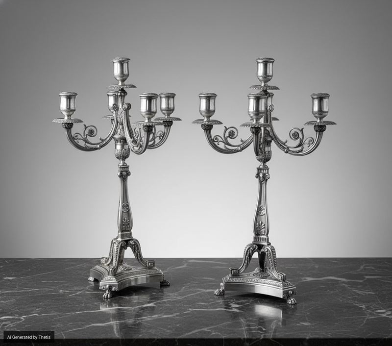 Coppia di candelabri. Argenteria milanese del XX secolo, bollo con fascio littorio in uso dal 1935 al 1945, argentiere Fassi Arno
