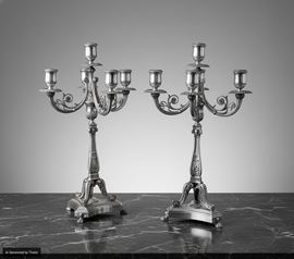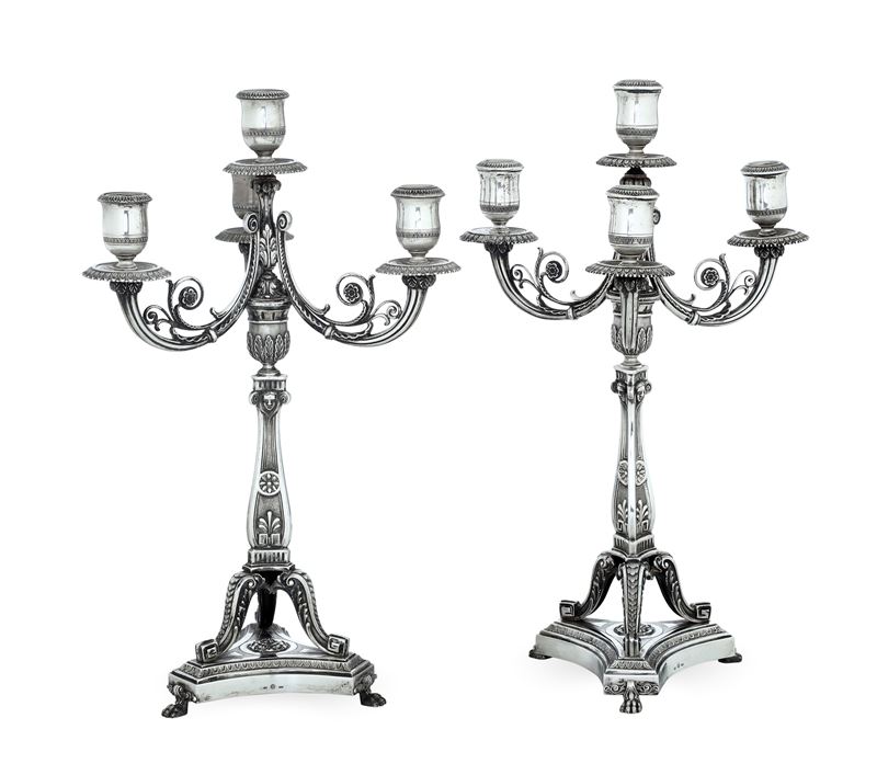 Coppia di candelabri. Argenteria milanese del XX secolo, bollo con fascio littorio in uso dal 1935 al 1945, argentiere Fassi [..]