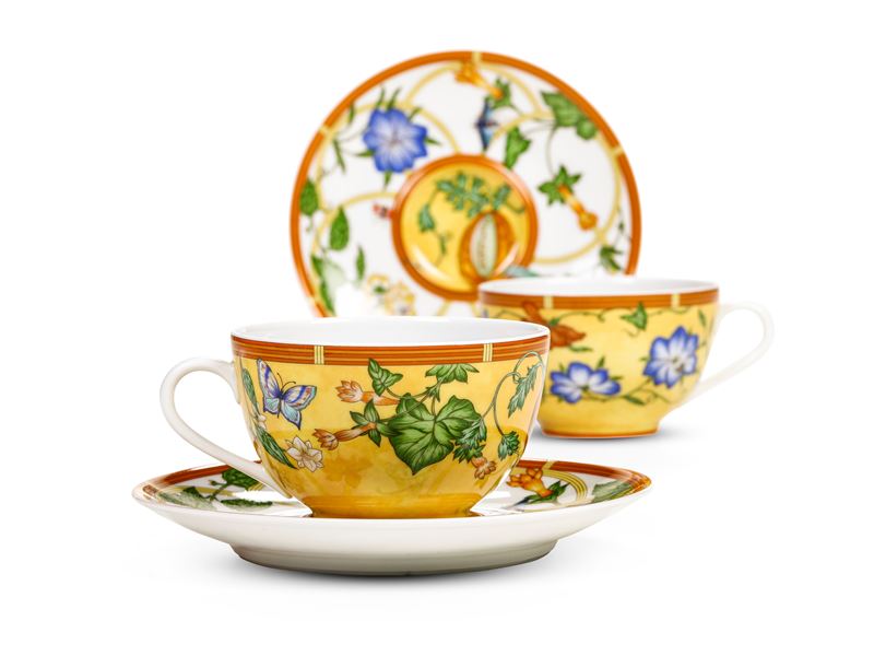 Coppia di tazze da tè Hermès “La Siesta” Francia, Manifattura Limoges, seconda metà del XX secolo