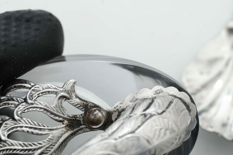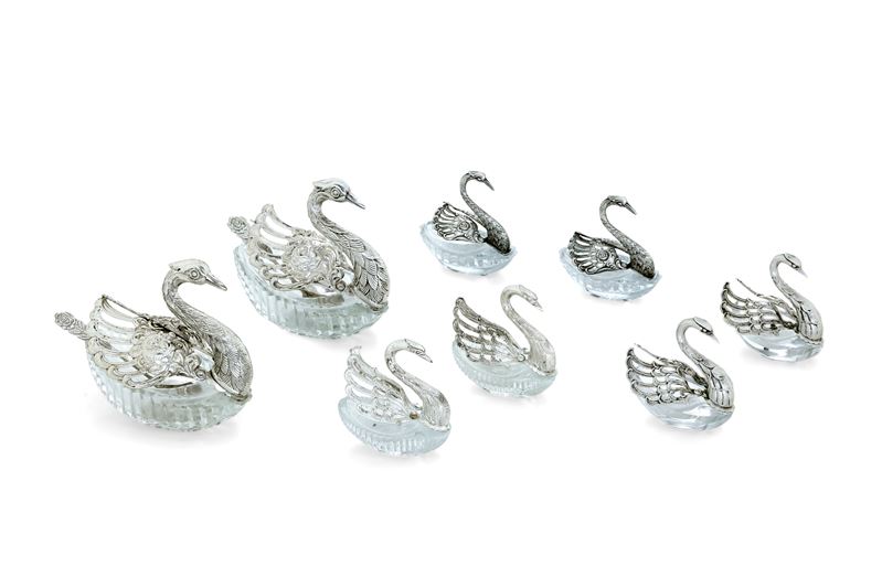 Due formaggiere e sei salini a guisa di cigno. Argenteria toscana del XX secolo, argentiere Emilio Panzanani