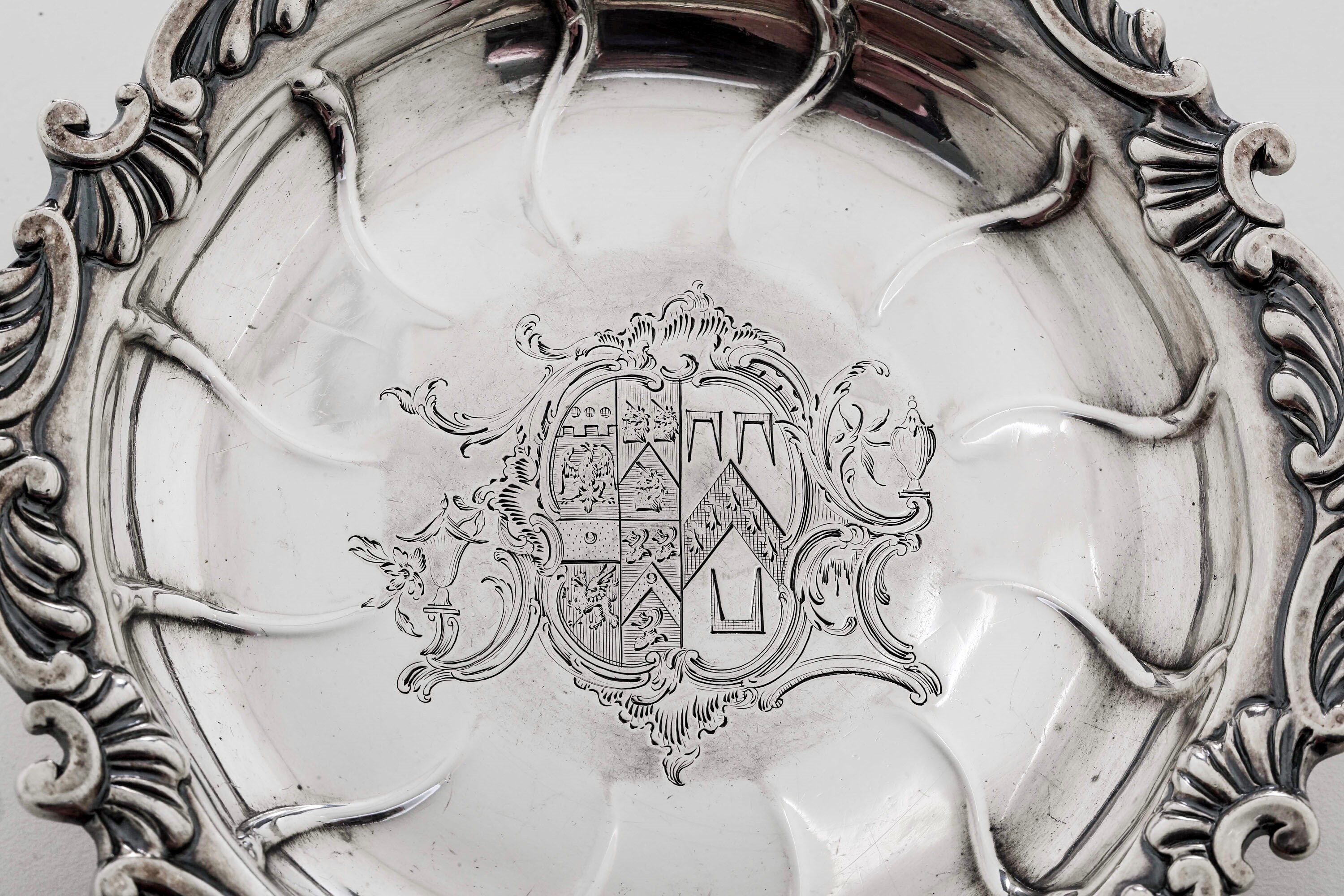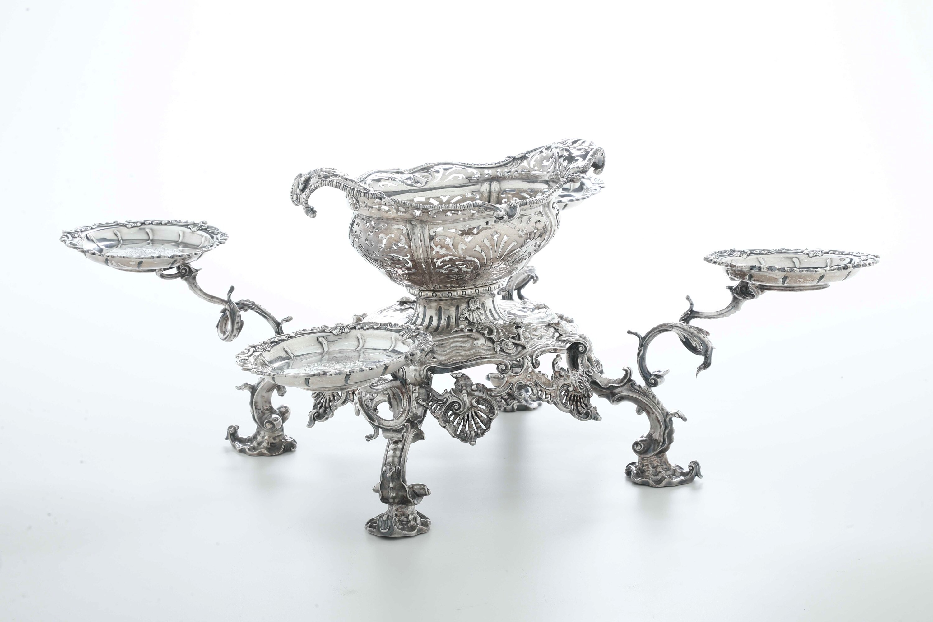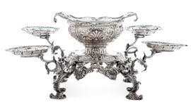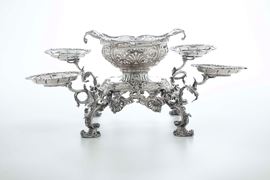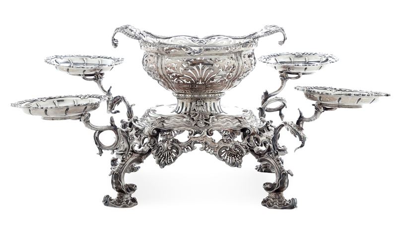 Epergne. Londra, XVIII secolo. Cestini: 1755, argentiere William Cripps Bracci con marchio AP non identificato