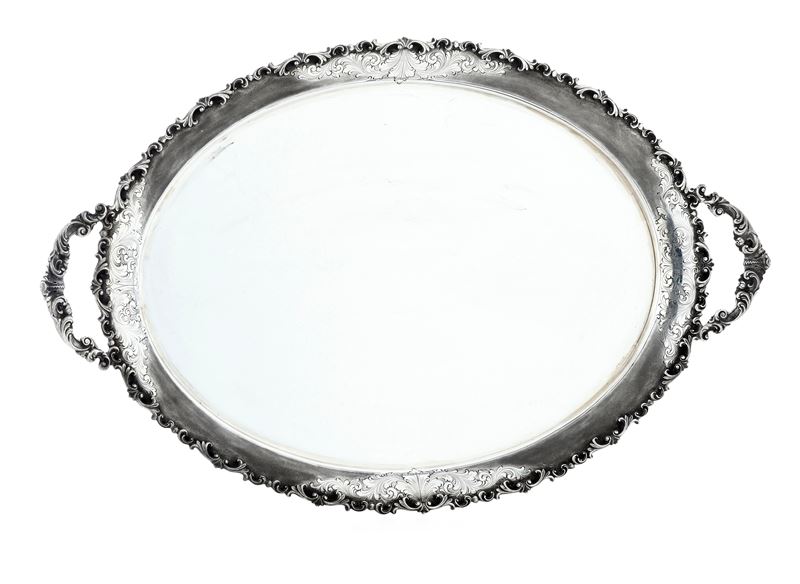 Grande vassoio biansato. Argenteria artistica italiana per Frugoni, Roma, XX secolo