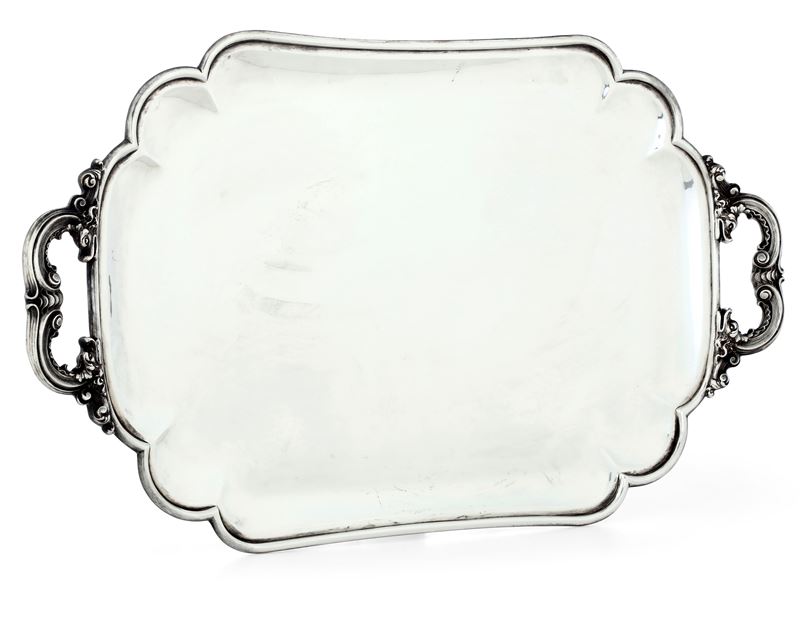 Grande vassoio biansato. Argenteria italiana del XX secolo, marchi in uso dal 1935 al 1945