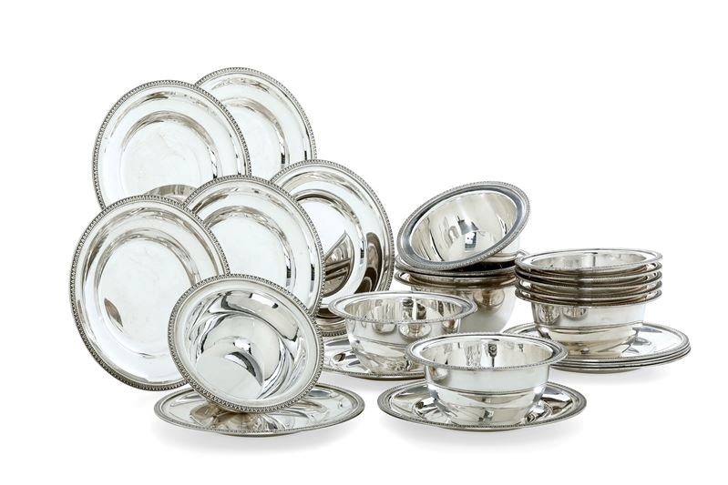Lotto di dodici lavadita e dodici piatti da pane. Argenteria italiana del XX secolo, argentiere Cesa, Alessandria