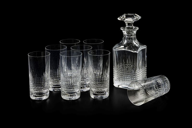 Otto highball con bottiglia “Nancy” Francia, Manifattura Baccarat, XX secolo