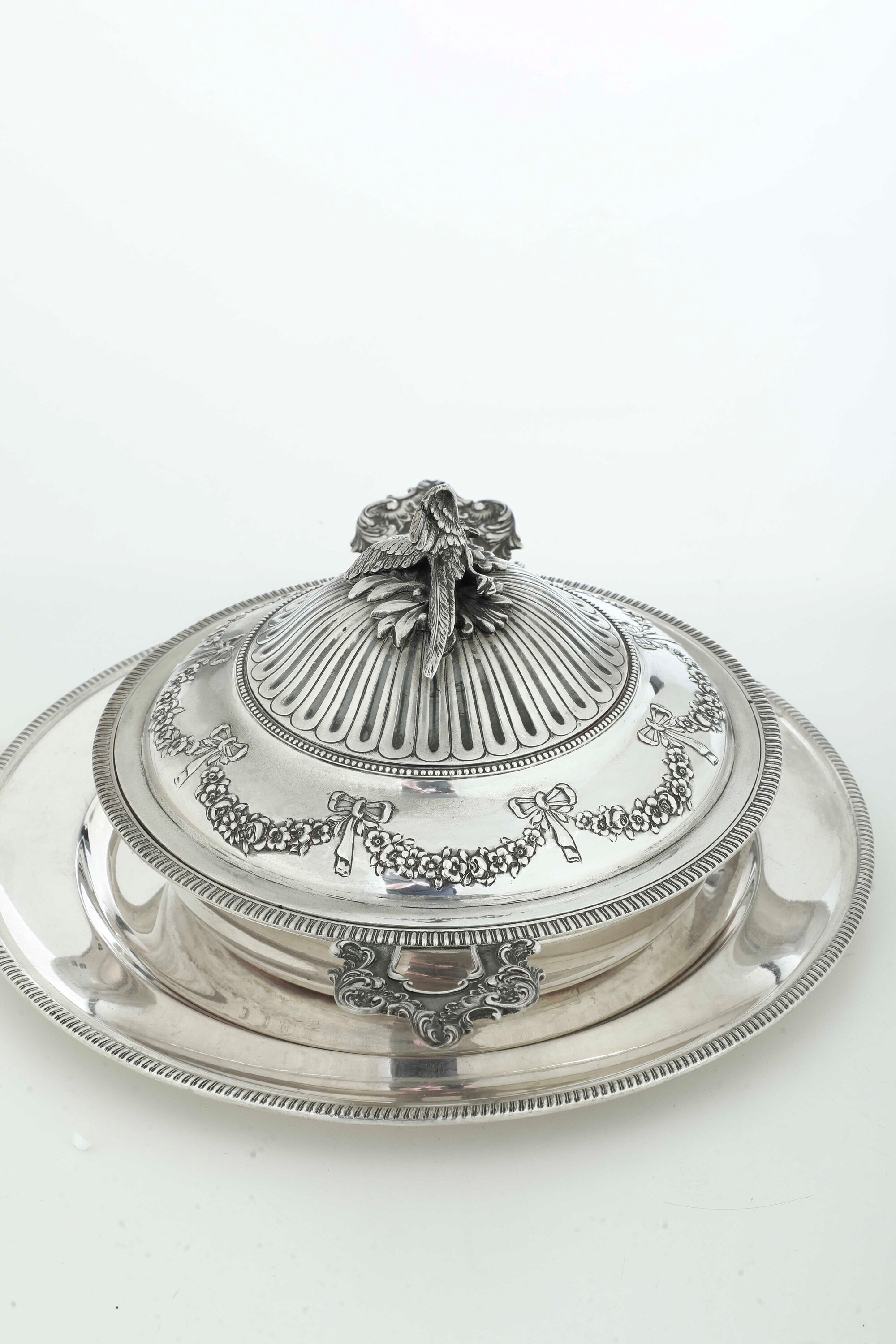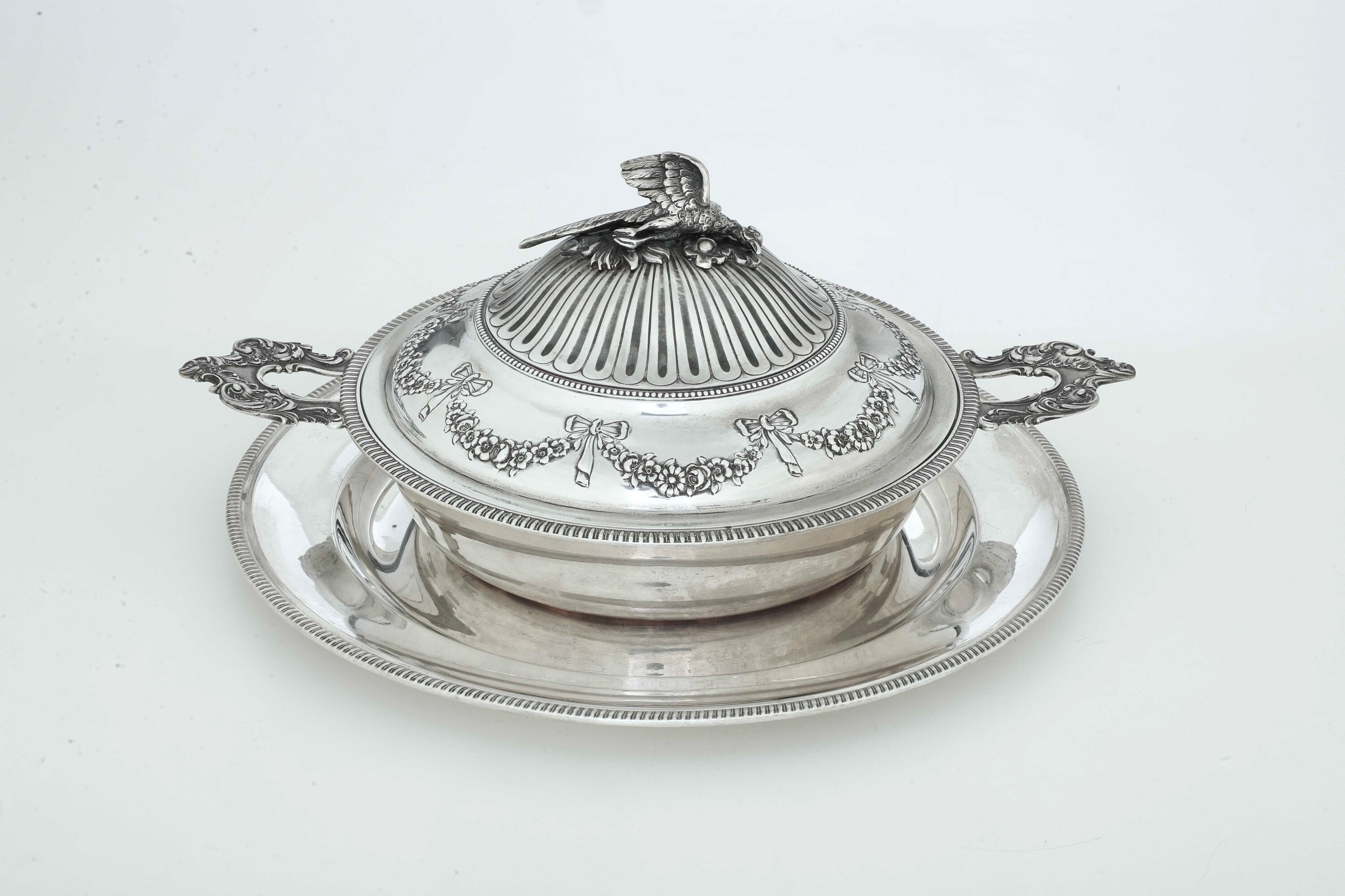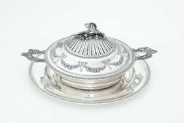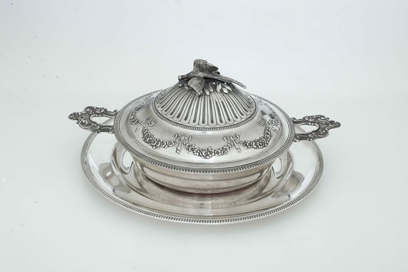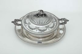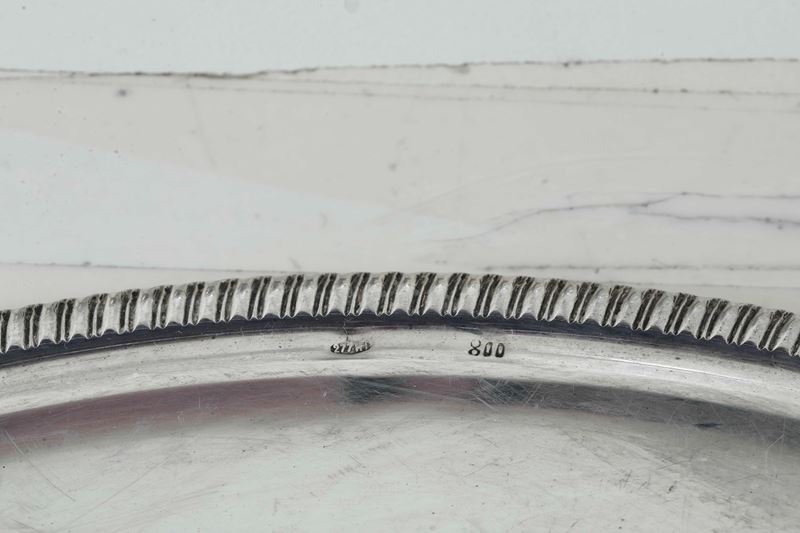 Paiola con piatto. Argenteria artistica milanese del XX secolo. Argentiere Dabbene